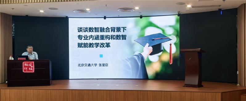 為深入貫徹落實國家教育數(shù)字化戰(zhàn)略行動,探索數(shù)智融合背景下專業(yè)發(fā)展新路徑,5月26日上午,學(xué)院成功舉辦 “談?wù)剶?shù)智融合背景下專業(yè)內(nèi)涵重構(gòu)和數(shù)智賦能教學(xué)改革”專題講座。本次講座邀請到 北京交通大學(xué)原副校長張星臣擔(dān)任主講嘉賓,學(xué)院領(lǐng)導(dǎo)、各二級學(xué)院領(lǐng)導(dǎo)、專業(yè)帶頭人、新進教師等近100人參加了本次講座。