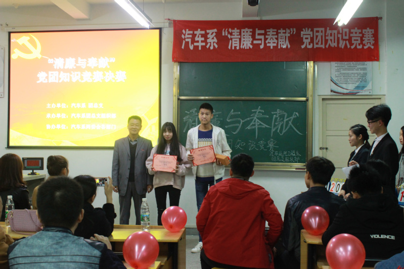 2017年03月21日,汽車運用工程系黨總支組織部舉辦了“清廉與奉獻”知識競賽活動,其目的在于加強對黨的認識,學習黨的奮斗精神,調(diào)動學生的入黨積極性,努力爭做一個優(yōu)秀的黨員,讓廣大共青團員努力實踐黨的號召,爭取早日加入中國共產(chǎn)黨,為社會主義事業(yè)做貢獻,成為國家最堅強的后盾,為“中國夢”共創(chuàng)一片天。以這次活動為契機,加強同學們對黨章的認識,對黨的十八大精神的學習,加深同學們對中國共產(chǎn)黨“兩個先鋒隊”和特色社會主義事業(yè)領(lǐng)導核心地位的認識以及讓同學們更加了解黨的指導思想,引導同學們積極地向黨組織靠攏,為此,汽車系黨總支組織部特地舉辦本次“清廉與奉獻”知識競賽活動。