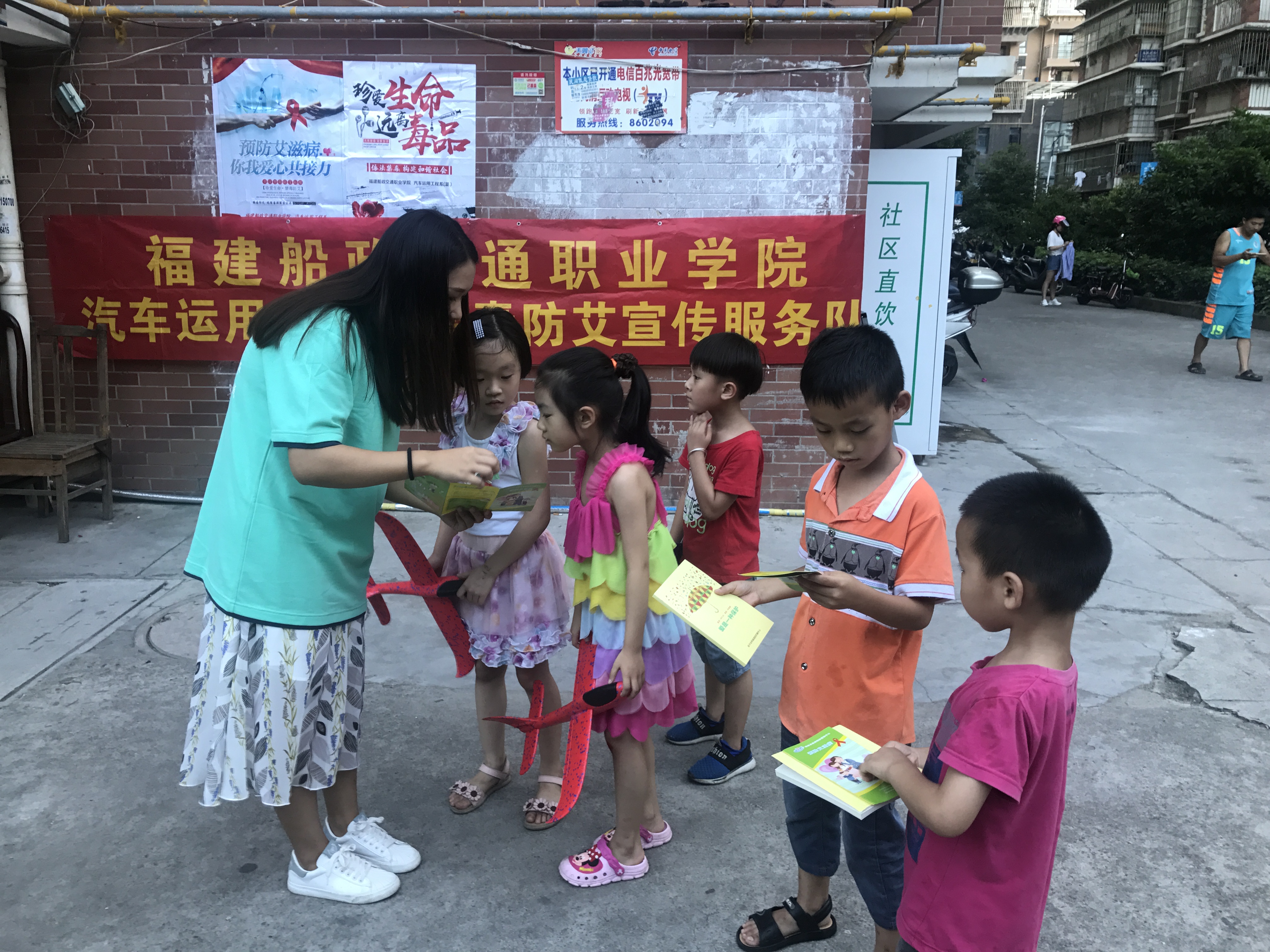 7月10日,我系宣傳隊(duì)在延平區(qū)錦繡佳園小區(qū)開展了禁毒防艾的宣傳,把預(yù)防艾滋、抵制毒品的常識傳遞到小朋友的認(rèn)知世界中去,同時(shí)也提高了當(dāng)?shù)鼐用駥痉腊恼J(rèn)識。