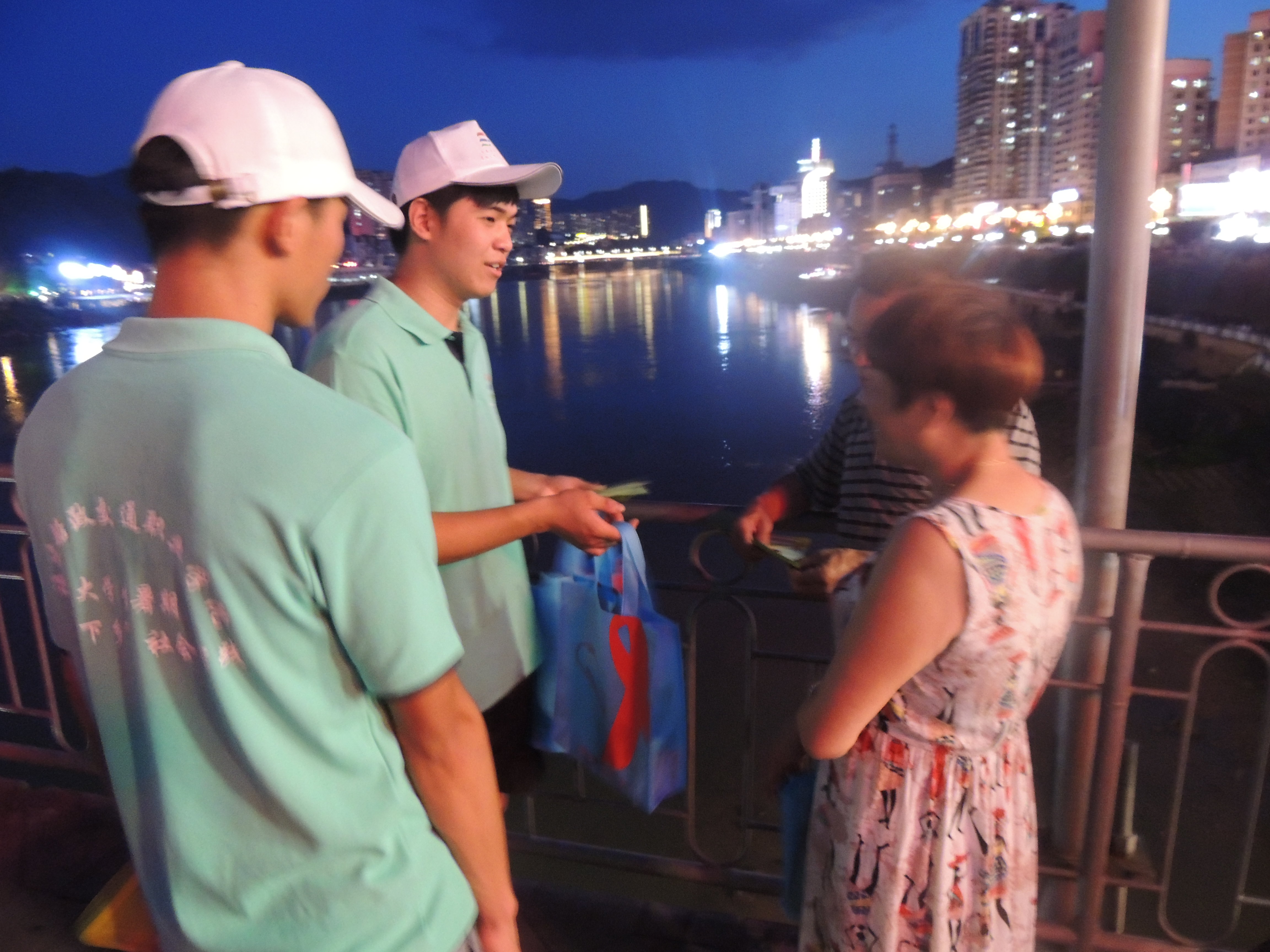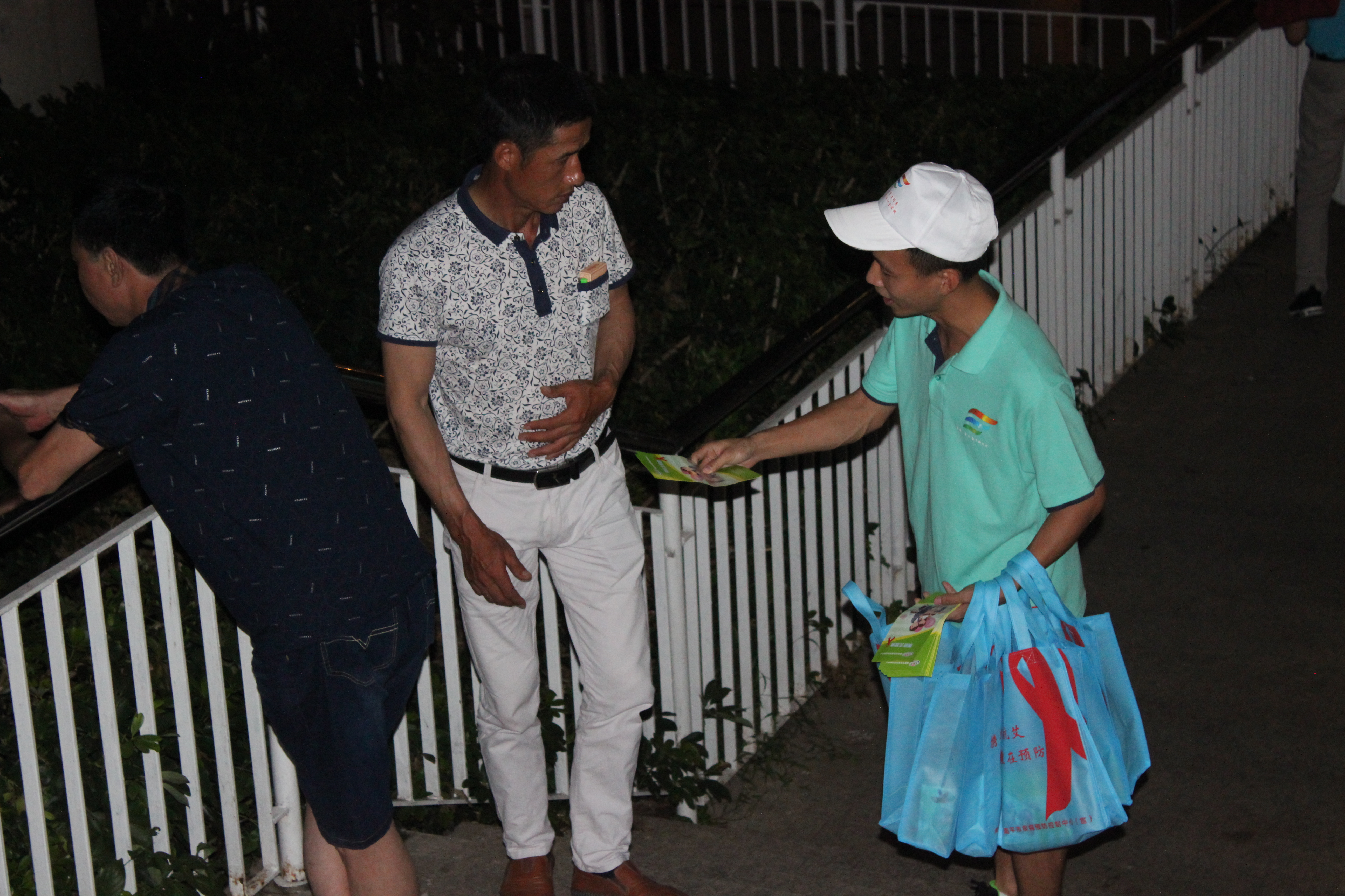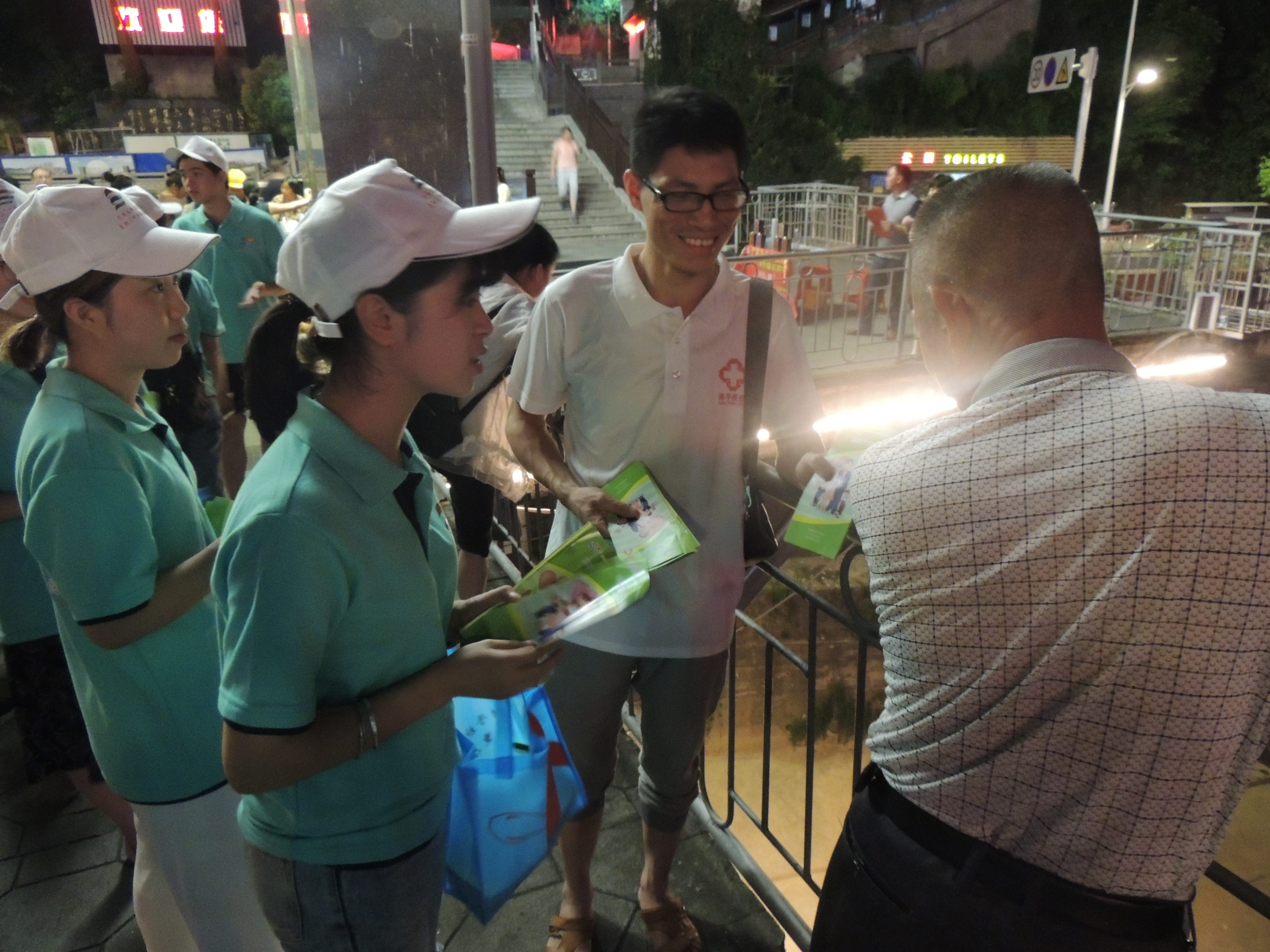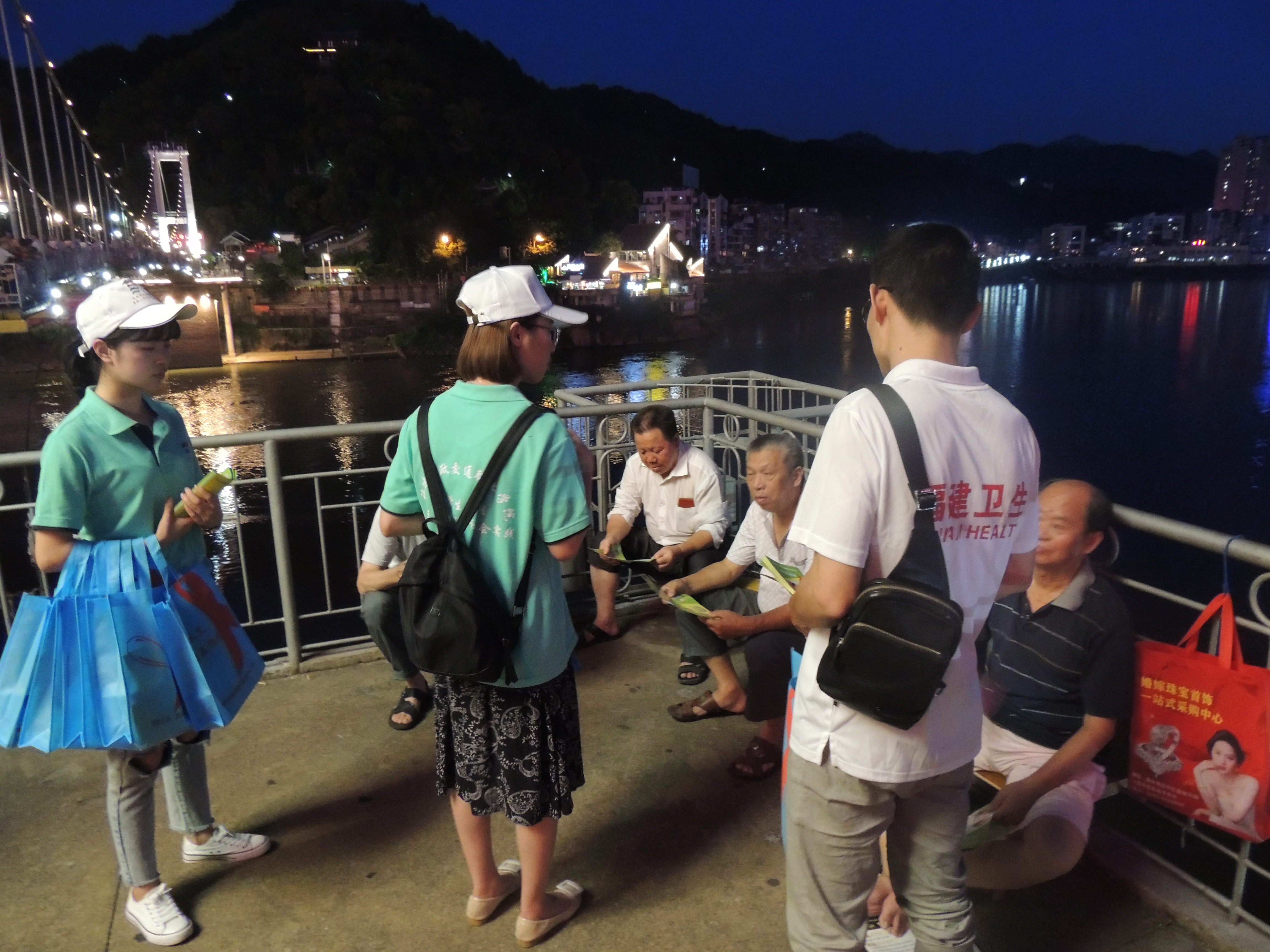 7月9日當(dāng)天并同南平市疾病控制中心的科研室主任和數(shù)位醫(yī)師及我們實(shí)踐隊(duì)領(lǐng)隊(duì)沈曉家老師以及實(shí)踐團(tuán)的師生進(jìn)行多點(diǎn)宣傳。在疾控中心醫(yī)師的防艾知識普及下,我們得知南平市艾滋發(fā)病率多在40歲以上的中老年人,我系宣傳隊(duì)根據(jù)這一特點(diǎn),選擇下午到傍晚在中老年人活動的密集區(qū)的公園、社區(qū)開展禁毒防艾的宣傳活動。