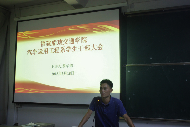 2018年9月18日,在福建船政交通職業(yè)學(xué)院北區(qū)22號(hào)樓407教室舉行了學(xué)生干部大會(huì)報(bào)告。參加報(bào)告的有汽車(chē)系教工黨員代表、16級(jí)兩委學(xué)生干部、17級(jí)全體學(xué)生干部以及18級(jí)臨時(shí)負(fù)責(zé)人。報(bào)告由汽車(chē)運(yùn)用工程系黨總支書(shū)記蔡華錦主持。