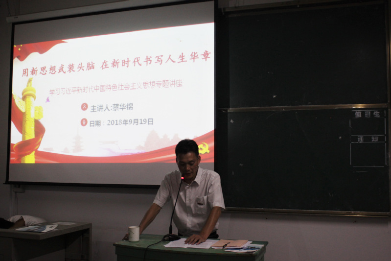 2018年9月19日,在福建船政交通職業(yè)學院北區(qū)22號樓407教室舉行了“用新思想武裝頭腦 在新時代書寫人生華章”的專題講座。參加報告的有汽車系教工黨員代表、18級各班臨時負責人以及優(yōu)秀學生代表。報告由汽車運用工程系黨總支書記蔡華錦主持。