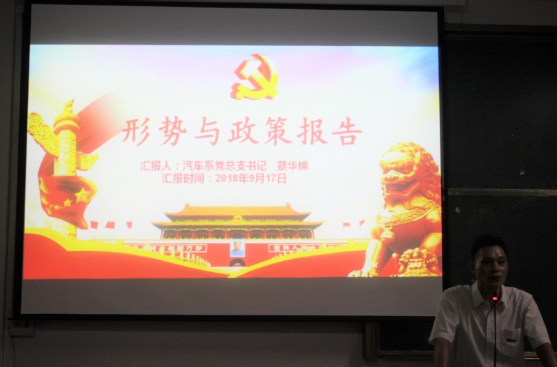 2018年9月17日,在福建船政交通職業(yè)學(xué)院北區(qū)22號樓407教室進(jìn)行了“用新思想武裝頭腦 在新時代書寫人生華章”的報告。參加了報告的有汽車系教工黨員代表以及各班臨時負(fù)責(zé)人、優(yōu)秀學(xué)生代表。報告由汽車系總支部書記蔡華錦同志主持。