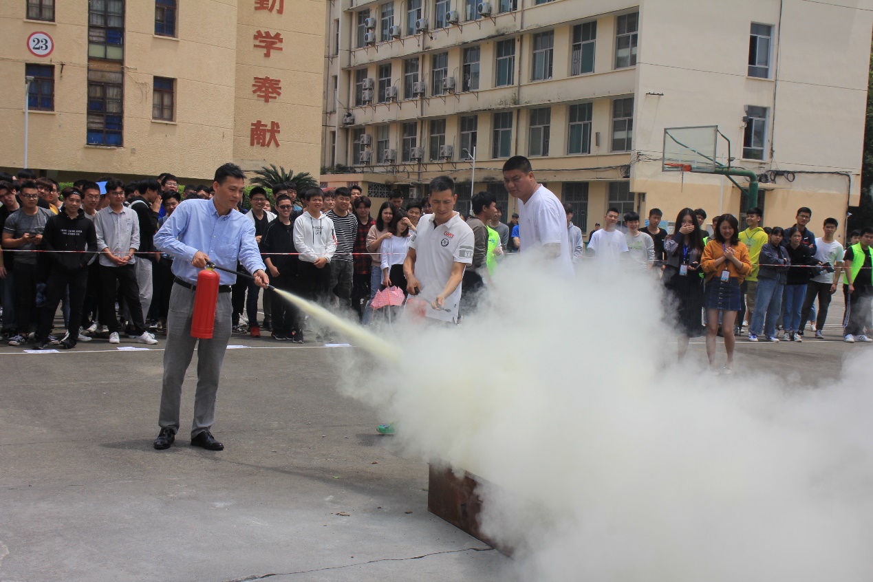 人員確認(rèn)完畢后,由學(xué)院消防專業(yè)人員對滅火器的使用和滅火的注意事項(xiàng)進(jìn)行講解,蔡華錦書記與輔導(dǎo)員親自為汽車系的同學(xué)們進(jìn)行滅火器使用做示范。