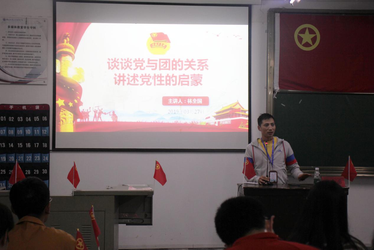團(tuán)課上輔導(dǎo)員林全國(guó)老師介紹了黨和共青團(tuán)關(guān)系并強(qiáng)調(diào),共青團(tuán)永遠(yuǎn)是黨的助手和后備軍