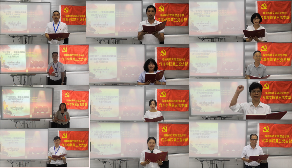2021年7月1日,是中國(guó)共產(chǎn)黨成立100周年的重要節(jié)日,為了表達(dá)對(duì)中國(guó)共產(chǎn)黨的敬意,汽車(chē)學(xué)院第三黨支部開(kāi)展了豐富多彩的主題黨日活動(dòng)。