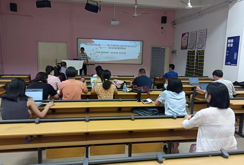 9月22日,汽車學(xué)院第二黨支部書記蘇慶列圍繞《習(xí)近平總書記“七一”重要講話精神》講授專題黨課,支部全體黨員干部聆聽報(bào)告。
