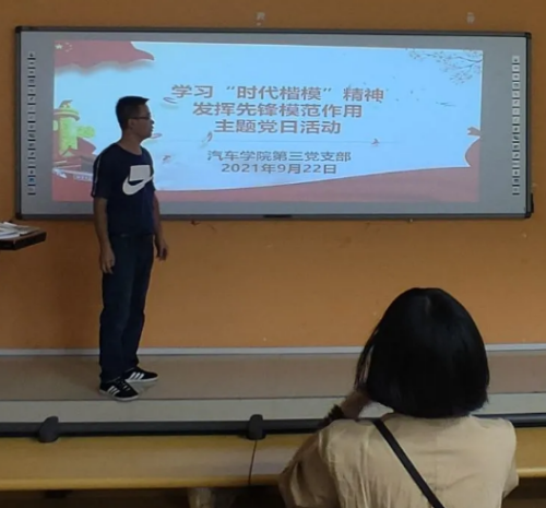 2021年9月10日以來由于我省發(fā)生新冠疫情,為確保學(xué)生身體健康及校園安定穩(wěn)定,保障大二學(xué)生的教學(xué)秩序和大三學(xué)生的頂崗實習(xí)安全,汽車學(xué)院第三黨支部黨員同心戰(zhàn)役,深入學(xué)生宿舍、教室和校園先鋒崗位,并于2021年9月22日開展了“學(xué)習(xí)時代楷模精神,發(fā)揮先鋒模范作用”的主題黨日活動。