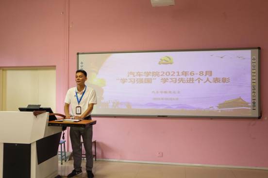 為進(jìn)一步學(xué)好用好“學(xué)習(xí)強國”學(xué)習(xí)平臺,持續(xù)深入學(xué)習(xí)宣傳貫徹習(xí)近平新時代中國特色社會主義思想,推動汽車學(xué)院廣大黨員、干部廣泛運用“學(xué)習(xí)強國”學(xué)習(xí)平臺開展好網(wǎng)上學(xué)習(xí),提高學(xué)習(xí)積極性,形成“比學(xué)趕超”濃郁氛圍,2021年10月6日下午,汽車學(xué)院在2號樓1-3教室,舉行“學(xué)習(xí)強國”優(yōu)秀先進(jìn)個人表彰會,汽車學(xué)院全體教職工黨員參加本次會議,會議由蔡華錦書記主持。