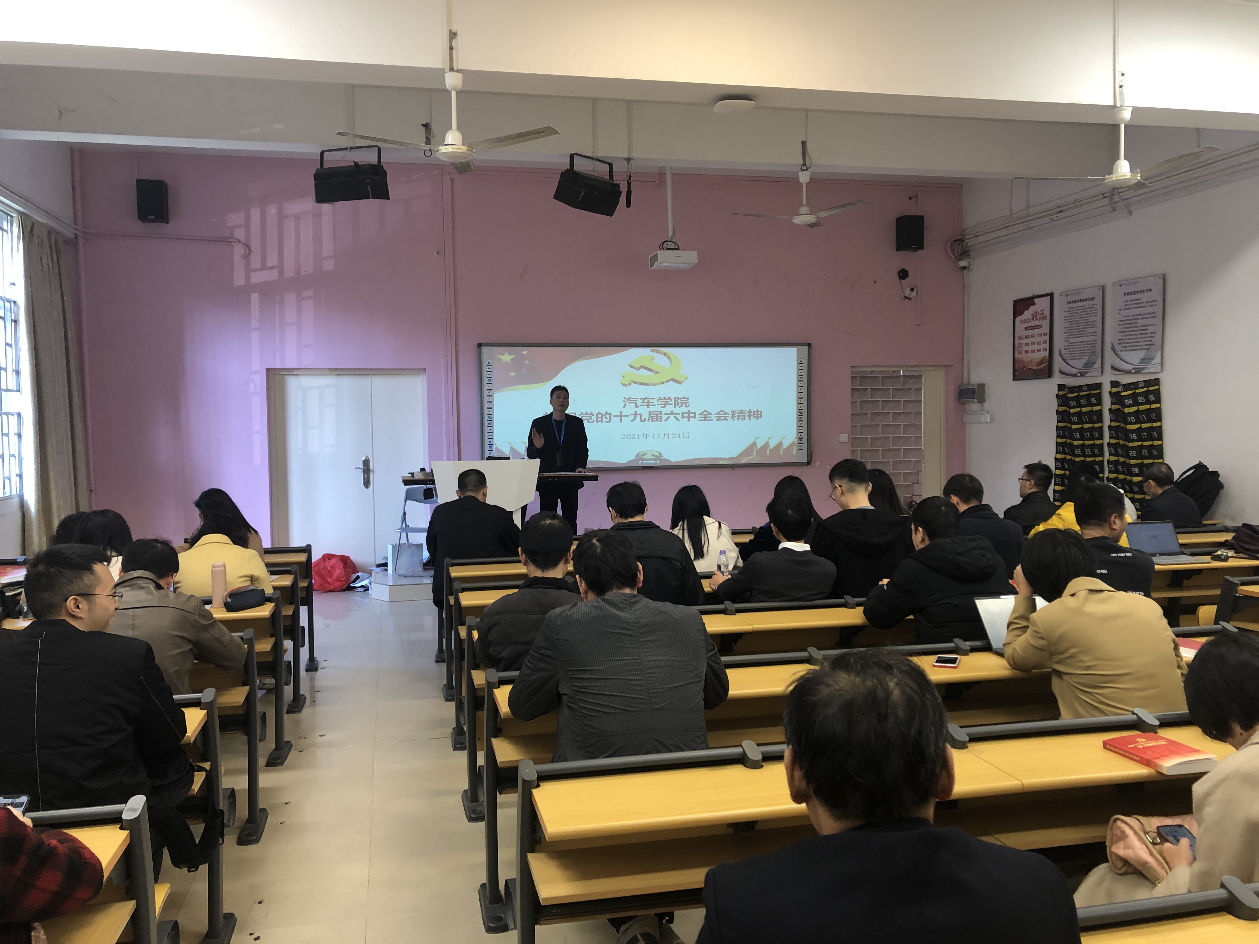 11月8日至11日,中國共產(chǎn)黨第十九屆中央委員會第六次會議在北京召開。這次全會是在中國共產(chǎn)黨成立100周年的重要時刻,在“兩個一百年”奮斗目標(biāo)歷史交匯的關(guān)鍵節(jié)點(diǎn)上召開的一次重要會議。11月24日下午,汽車學(xué)院組織全體黨員、教職工召開學(xué)習(xí)大會,專題學(xué)習(xí)貫徹黨的十九屆六中全會精神。汽車學(xué)院黨總支書記主持學(xué)習(xí)并講話。