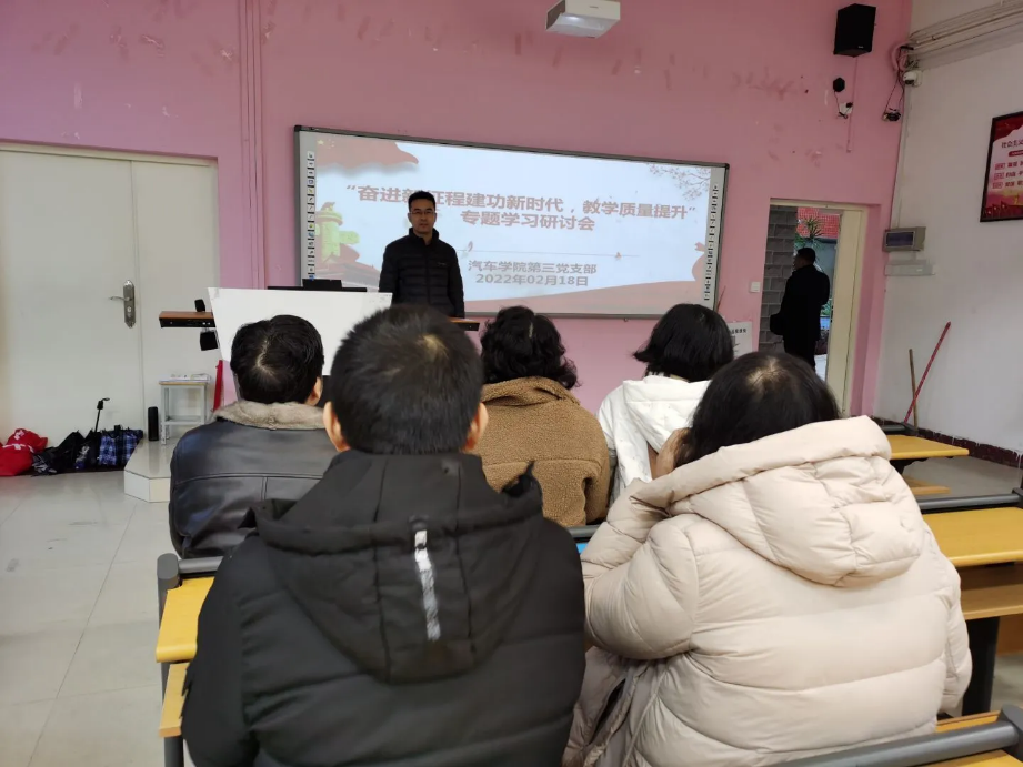 為促進(jìn)新學(xué)期的教學(xué)工作順利進(jìn)行,2022年2月18日,汽車學(xué)院第三黨支部在北區(qū)2#1-3組織開(kāi)展了“奮進(jìn)新征程建功新時(shí)代,促教學(xué)質(zhì)量提升”專題學(xué)習(xí)研討會(huì)-崗位練兵主題黨日活動(dòng),活動(dòng)由汽車學(xué)院第三黨支部書(shū)記朱劍寶主持。
