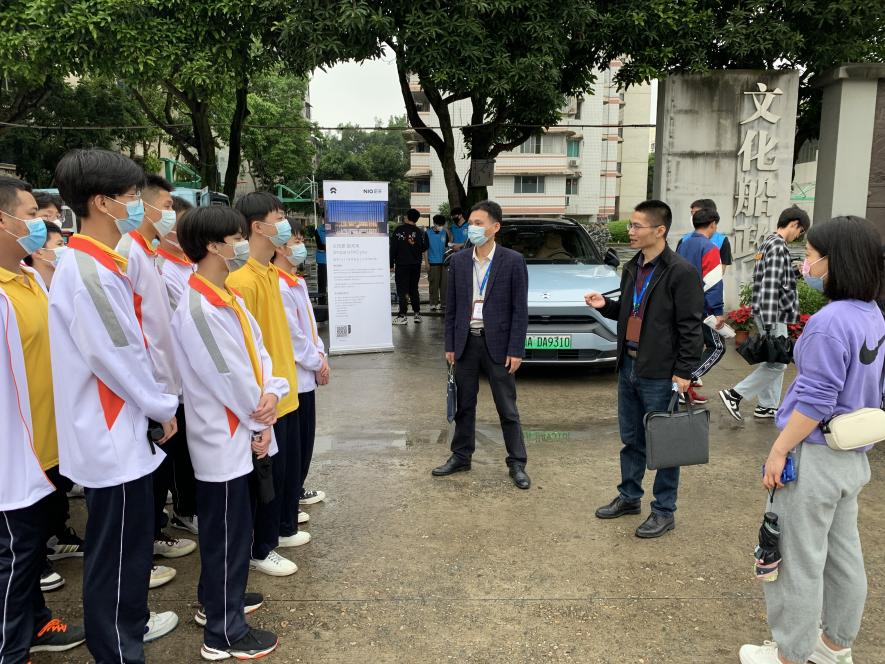 在北區(qū)門口的“企業(yè)文化進校園”蔚來汽車展示環(huán)節(jié),由在蔚來汽車實習的19級新能源專業(yè)學長給同學們講解了蔚來汽車的新售后業(yè)態(tài)及施救服務,這也引起了同學們對新能源汽車的興趣。在新能源實訓室,黃林火老師給學生們解答了許多新能源汽車相關的問題。