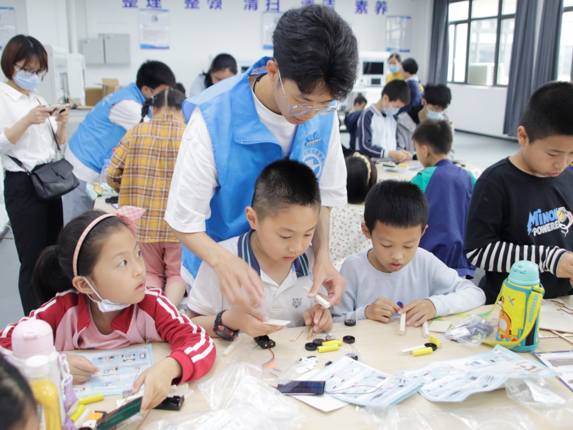 圖2 小朋友們在志愿者的指導下組裝DIY車模
