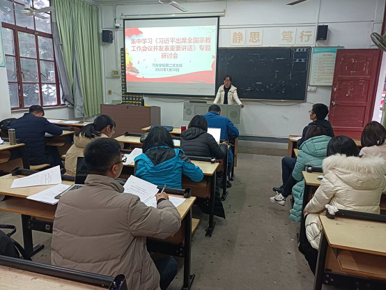 1月10日,汽車學院第二黨支部開展學習《習近平主席全國宗教工作會議并發(fā)表重要講話》專題研討會。支部書記蘇慶列強調要把學習貫徹好會議精神作為重要政治任務,堅持以習近平新時代中國特色社會主義思想為指導,充分認識宗教工作的特殊重要性,完整準確全面領會和貫徹新時代黨的宗教工作理論和方針政策,增強做好宗教工作的責任感和使命感,不斷開創(chuàng)學院宗教工作新局面。