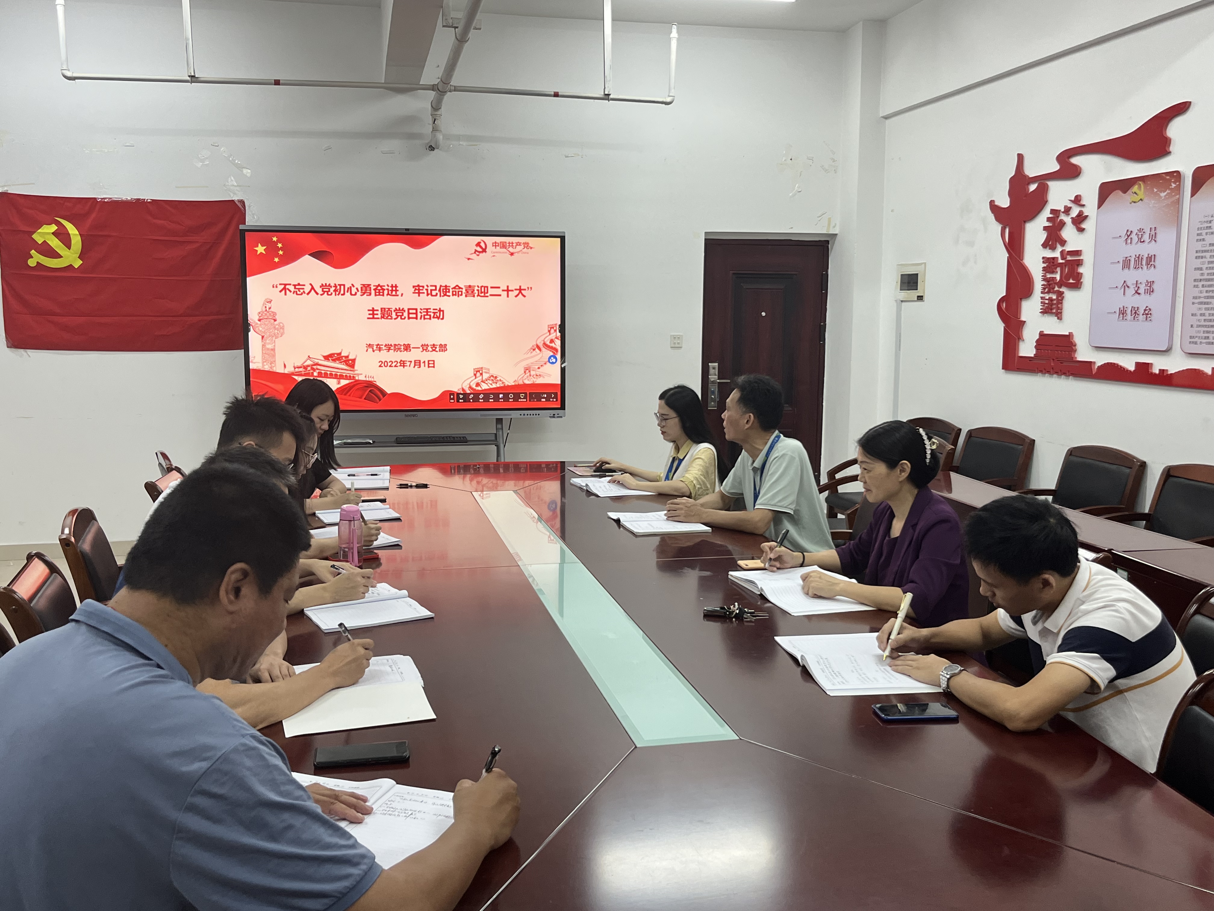 為慶祝中國共產(chǎn)黨成立101周年,迎接黨的二十大勝利召開,進一步教育引導(dǎo)黨員深入學(xué)習(xí)習(xí)近平新時代中國特色社會主義思想,2022年7月1日,汽車學(xué)院第一黨支部組織開展“不忘入黨初心勇奮進,牢記使命喜迎黨的二十大”主題黨日活動,支部同過“政治生日”活動。