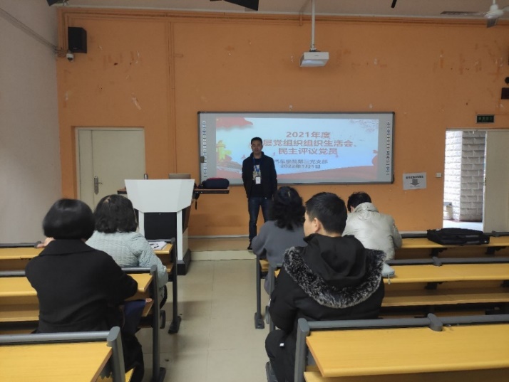 黨支部書記朱劍寶同志代表黨支部委員會報告工作,報告了2021年黨史學習教育整改落實情況,通報黨支部委員查擺問題等方面情況,按照上一級黨組織確定的項目、內容和等次,接受黨員評議;同時朱劍寶同志帶頭作個人對照檢查、自我批評,接受各位黨員的批評。其他黨員也逐一進行對照檢查和自我批評,并開展相互批評。