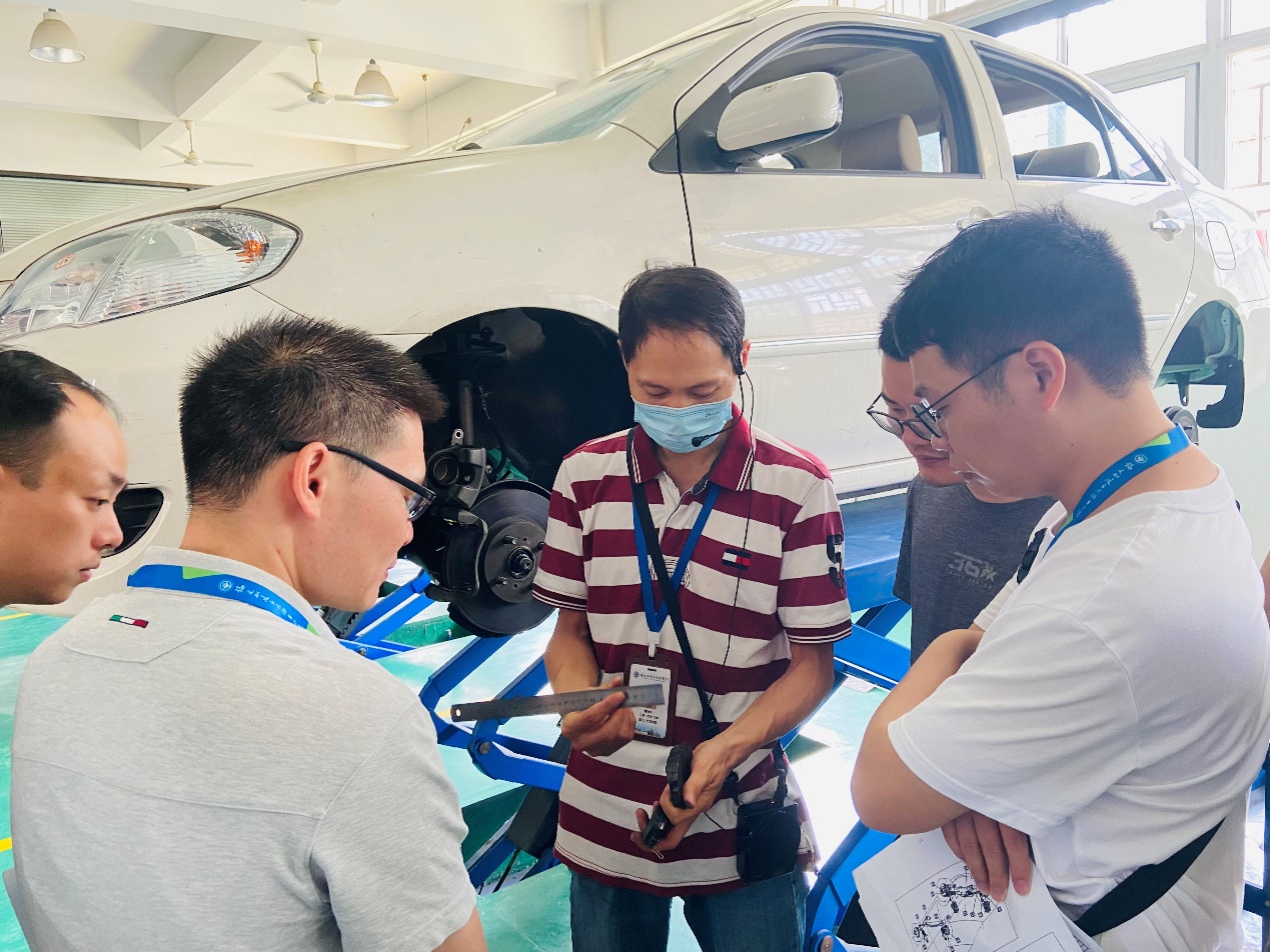 此次培訓(xùn)主要圍繞“豐田汽車四萬公里維護(hù)項(xiàng)目實(shí)操、智能網(wǎng)聯(lián)實(shí)訓(xùn)室線控驅(qū)動(dòng)制動(dòng)臺(tái)架及新能源三電技術(shù)”。17-18日,主講老師帶領(lǐng)學(xué)員熟悉了豐田實(shí)訓(xùn)室的汽車維修環(huán)境和修理工具,了解汽車基本構(gòu)造與工作原理,從九個(gè)頂起位置的檢查和維護(hù)內(nèi)容展開了詳細(xì)的介紹。24-25日,在智能網(wǎng)聯(lián)技術(shù)實(shí)訓(xùn)室和新能源技術(shù)實(shí)訓(xùn)室,主講老師分別針對(duì)線控驅(qū)動(dòng)制動(dòng)臺(tái)架和新能源三電技術(shù)進(jìn)行了實(shí)訓(xùn)講解。過程中,主講老師將講解示范與實(shí)際案例分析相結(jié)合,又鼓勵(lì)每位學(xué)員動(dòng)手實(shí)踐,從中總結(jié)出重點(diǎn)、難點(diǎn),充分調(diào)動(dòng)學(xué)員的主觀能動(dòng)性,在短時(shí)間讓學(xué)員們了解汽車維護(hù)關(guān)鍵技能規(guī)范化操作方法,掌握汽車故障診斷基本方法與典型故障的診斷與排除方法。