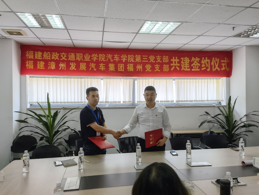 為慶祝中國(guó)共產(chǎn)黨成立101周年,迎接黨的二十大勝利召開,2022年6月23日,汽車學(xué)院第三黨支部與中共福建漳州發(fā)展汽車集團(tuán)福州支部積極開展校企支部共建,促進(jìn)與企業(yè)支部在教學(xué)、科研、大賽、服務(wù)等方面的深度合作,培養(yǎng)高素質(zhì)技術(shù)技能型人才。