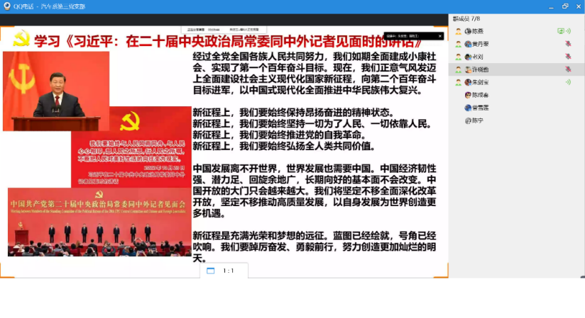 為學(xué)習(xí)貫徹黨的二十大精神,提高教師黨員的黨性修養(yǎng),在教學(xué)工作中充分發(fā)揮黨員的先鋒模范帶頭作用,汽車學(xué)院第三黨支部于2022年11月23日線上開展“學(xué)習(xí)貫徹黨的二十大精神”主題黨日活動,會議由第三黨支部書記朱劍寶同志主持,第三黨支部全體黨員參加。