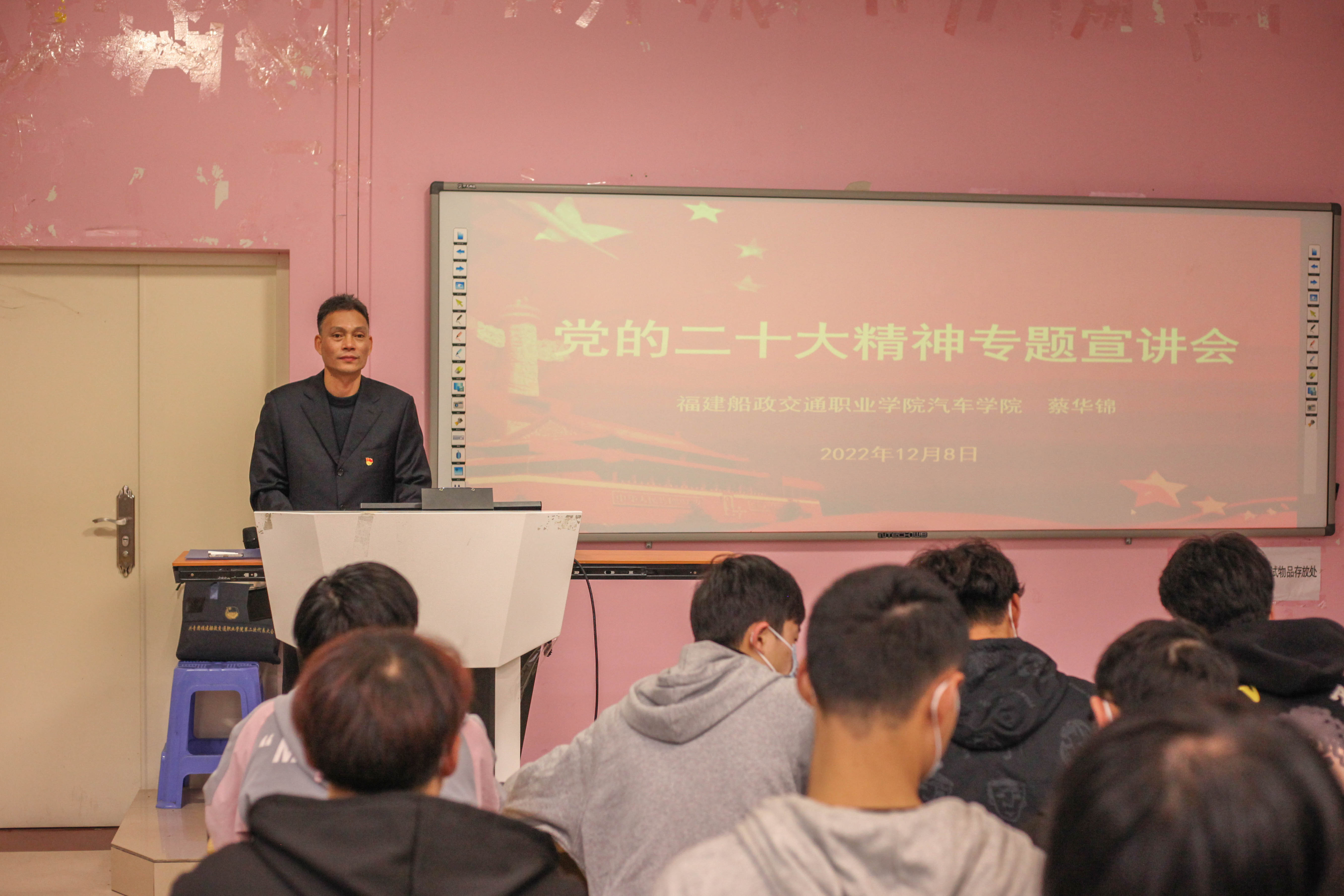 為學(xué)習(xí)宣傳黨的二十大精神,勉勵(lì)青年大學(xué)生賡續(xù)血脈、堅(jiān)定理想,激揚(yáng)奮進(jìn)、貢獻(xiàn)力量,2022年12月8日汽車學(xué)院在北區(qū)2號(hào)樓1-3教室組織開展黨的二十大精神專題宣講會(huì)。本次宣講會(huì)由汽車學(xué)院黨總支書記蔡華錦主講,汽車學(xué)院學(xué)生代表現(xiàn)場(chǎng)聆聽。