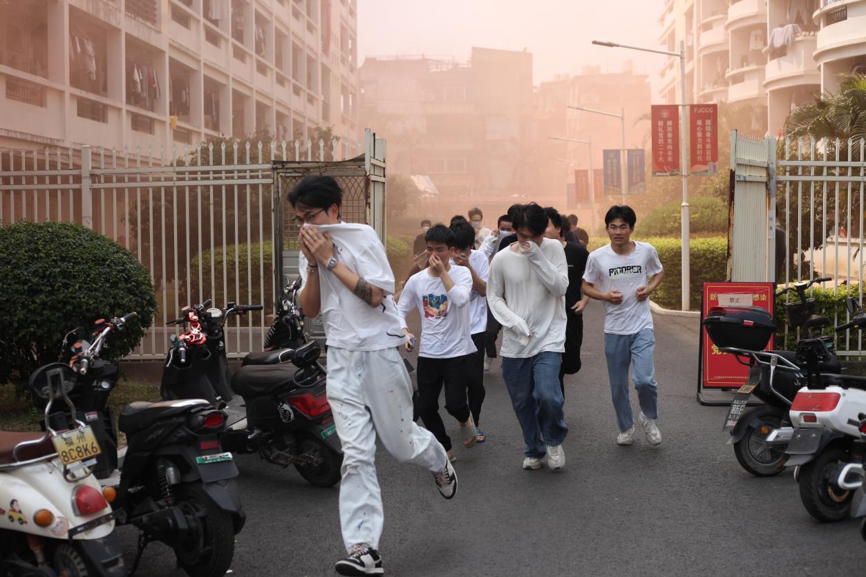 隨著警報(bào)聲響起,汽車學(xué)院全體師生聽從廣播系統(tǒng)的指引,迅速組織同學(xué)們拿毛巾浸濕,捂住口鼻,即刻快速遠(yuǎn)離著火點(diǎn),彎腰低頭,有序跟隨指揮人員按疏散路線快速撤離至安全地帶。整個(gè)疏散過程急而不亂、穩(wěn)定有序,順利地完成此次消防安全疏散逃生演練活動(dòng)。