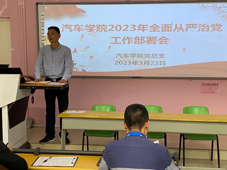 為全面貫徹黨的二十大精神,推進(jìn)全面從嚴(yán)治黨工作,3月22日下午,汽車(chē)學(xué)院在北區(qū)2號(hào)樓103教室召開(kāi)2023年全面從嚴(yán)治黨工作部署會(huì),全體教職工參會(huì)。