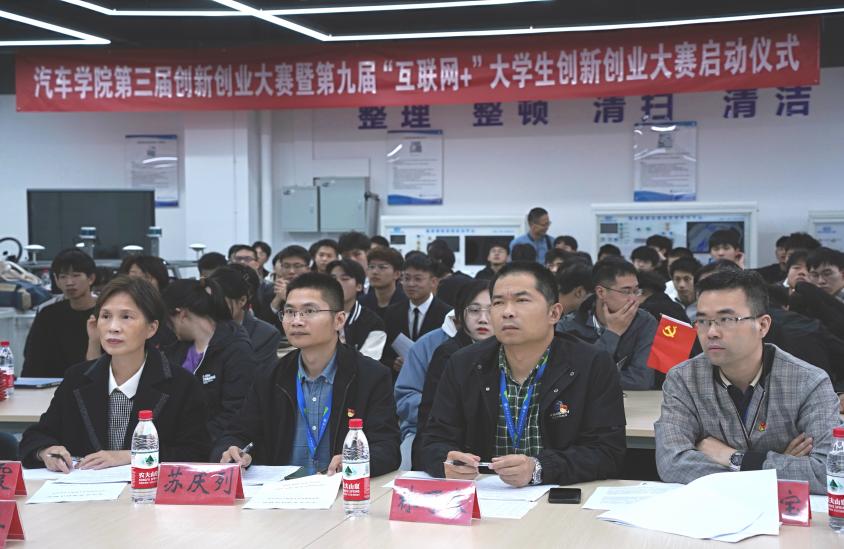 為深入貫徹落實(shí)學(xué)校黨委“深學(xué)爭優(yōu)、敢為爭先、實(shí)干爭效”行動部署,進(jìn)一步提升汽車學(xué)院“三全育人”工作實(shí)效。4月26日,我院在藝新樓汽車智能網(wǎng)聯(lián)實(shí)訓(xùn)室舉辦第三屆創(chuàng)新創(chuàng)業(yè)大賽暨第九屆“互聯(lián)網(wǎng)+”大學(xué)生創(chuàng)新創(chuàng)業(yè)大賽啟動儀式。創(chuàng)新創(chuàng)業(yè)學(xué)院林霞院長、汽車學(xué)院蘇慶列院長、林可春副院長、湯振周副院長以及謝俊淋副教授擔(dān)任本次大賽評委。學(xué)院80多名師生在現(xiàn)場觀看比賽。