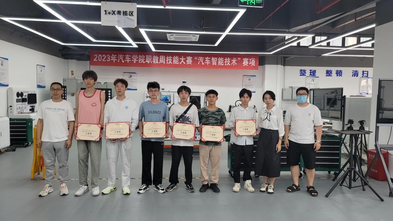 汽車智能技術(shù)專業(yè)教師為此次賽項得獎的同學(xué)頒獎