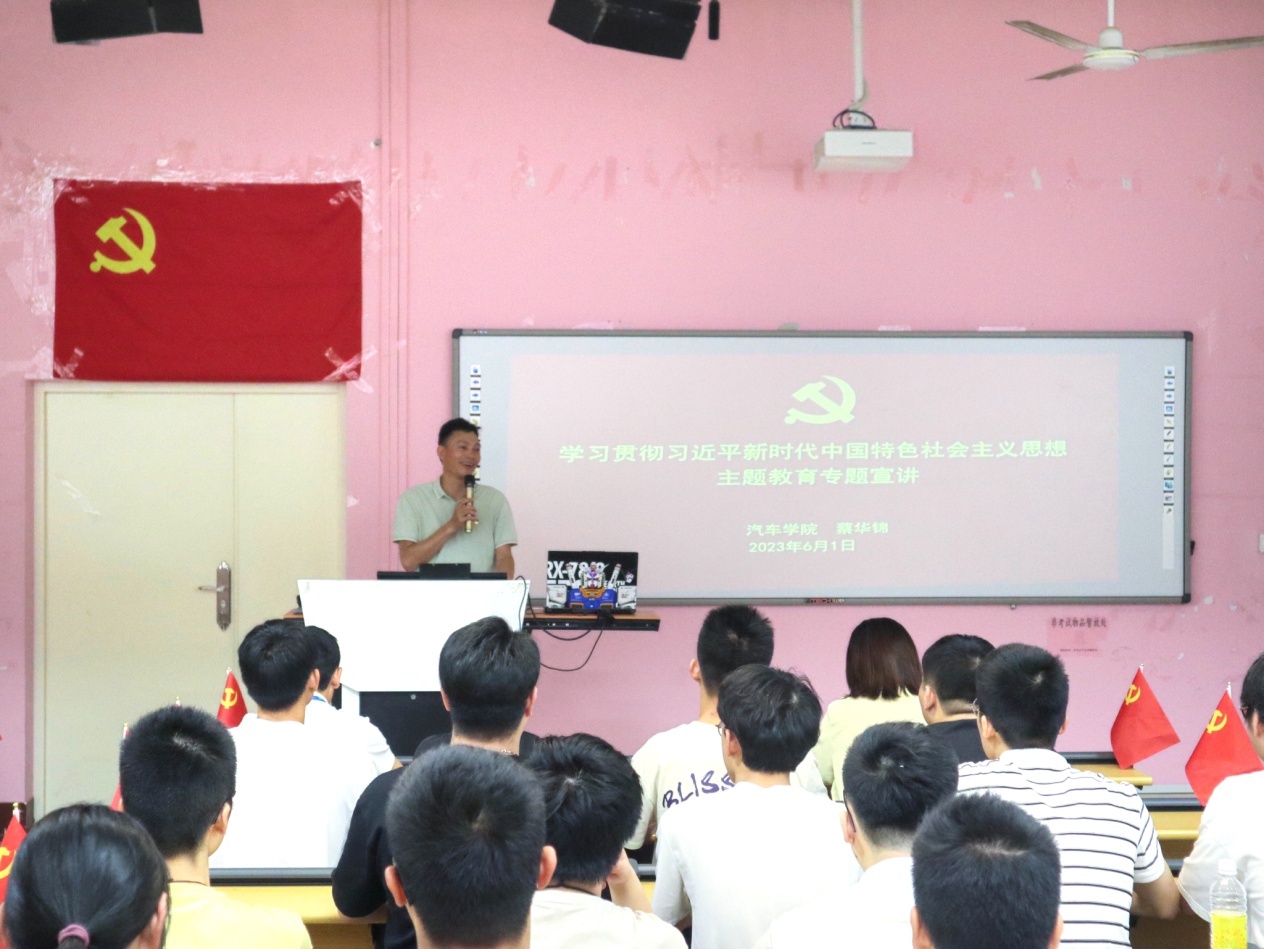 為了深入學(xué)習(xí)貫徹習(xí)近平新時(shí)代中國(guó)特色社會(huì)主義思想,進(jìn)一步推動(dòng)開(kāi)展學(xué)習(xí)貫徹習(xí)近平新時(shí)代中國(guó)特色社會(huì)主義思想主題教育在學(xué)院走深做實(shí), 2023年6月1日,汽車(chē)學(xué)院黨總支蔡華錦書(shū)記在自強(qiáng)樓1-3教室開(kāi)展學(xué)習(xí)貫徹習(xí)近平新時(shí)代中國(guó)特色社會(huì)主義思想主題教育宣講會(huì)。輔導(dǎo)員、全體學(xué)生黨員參加宣講會(huì)。