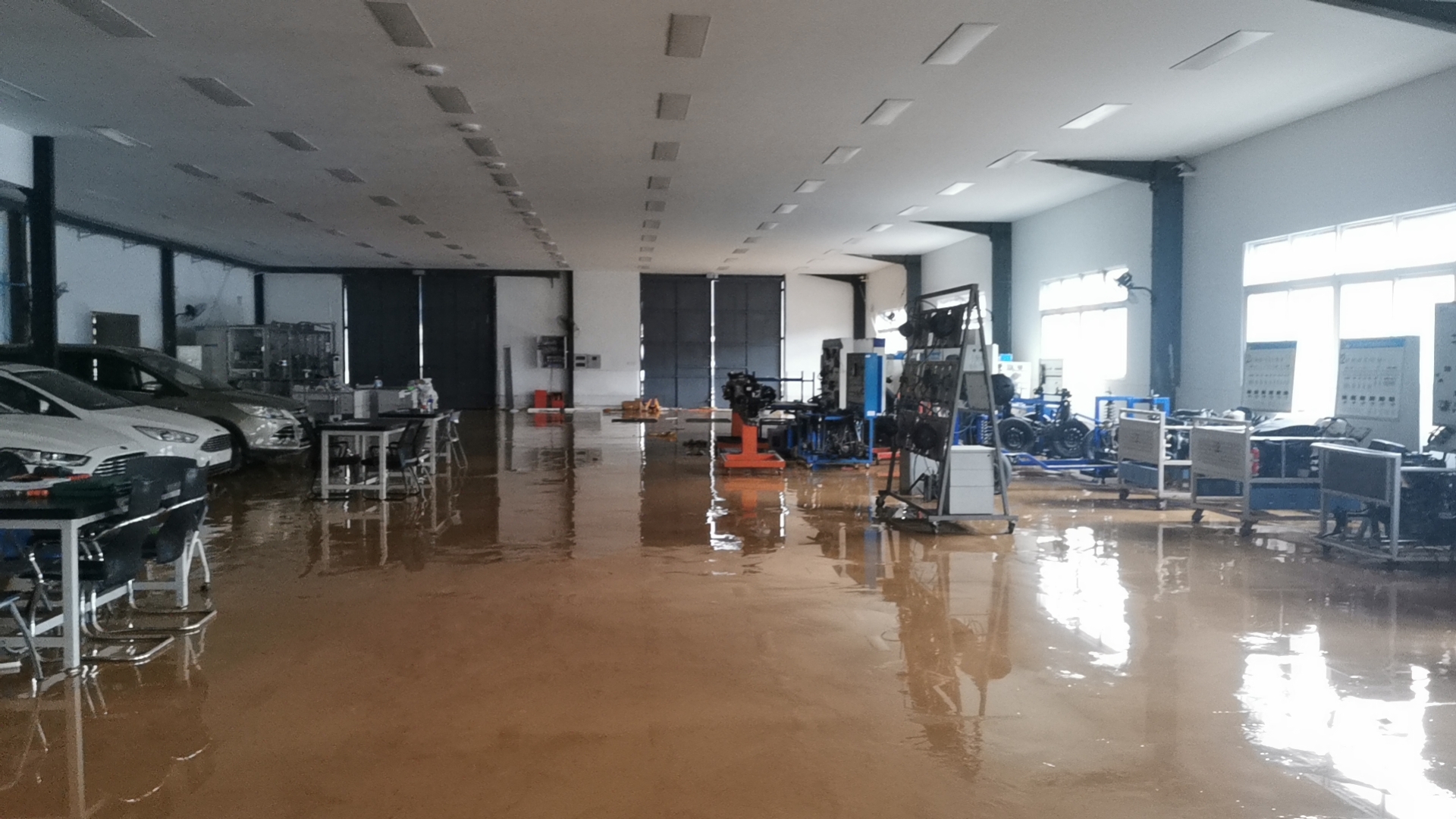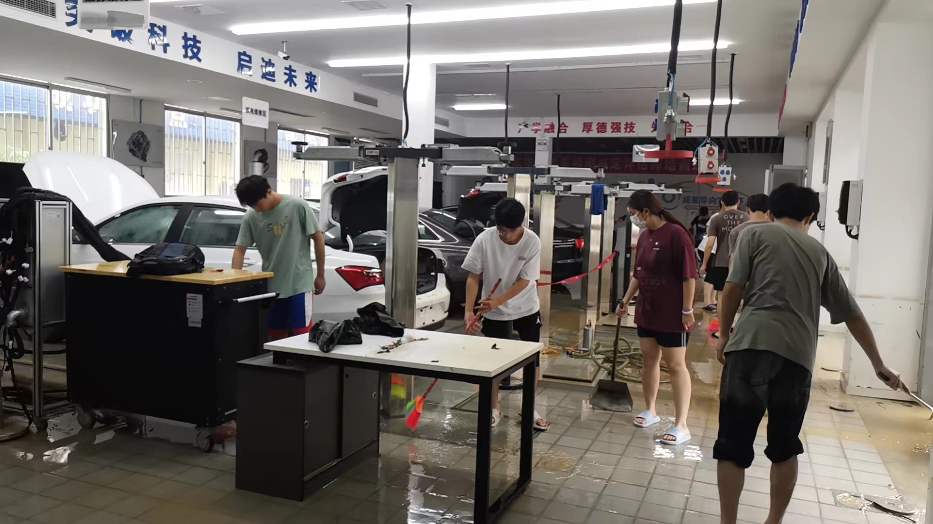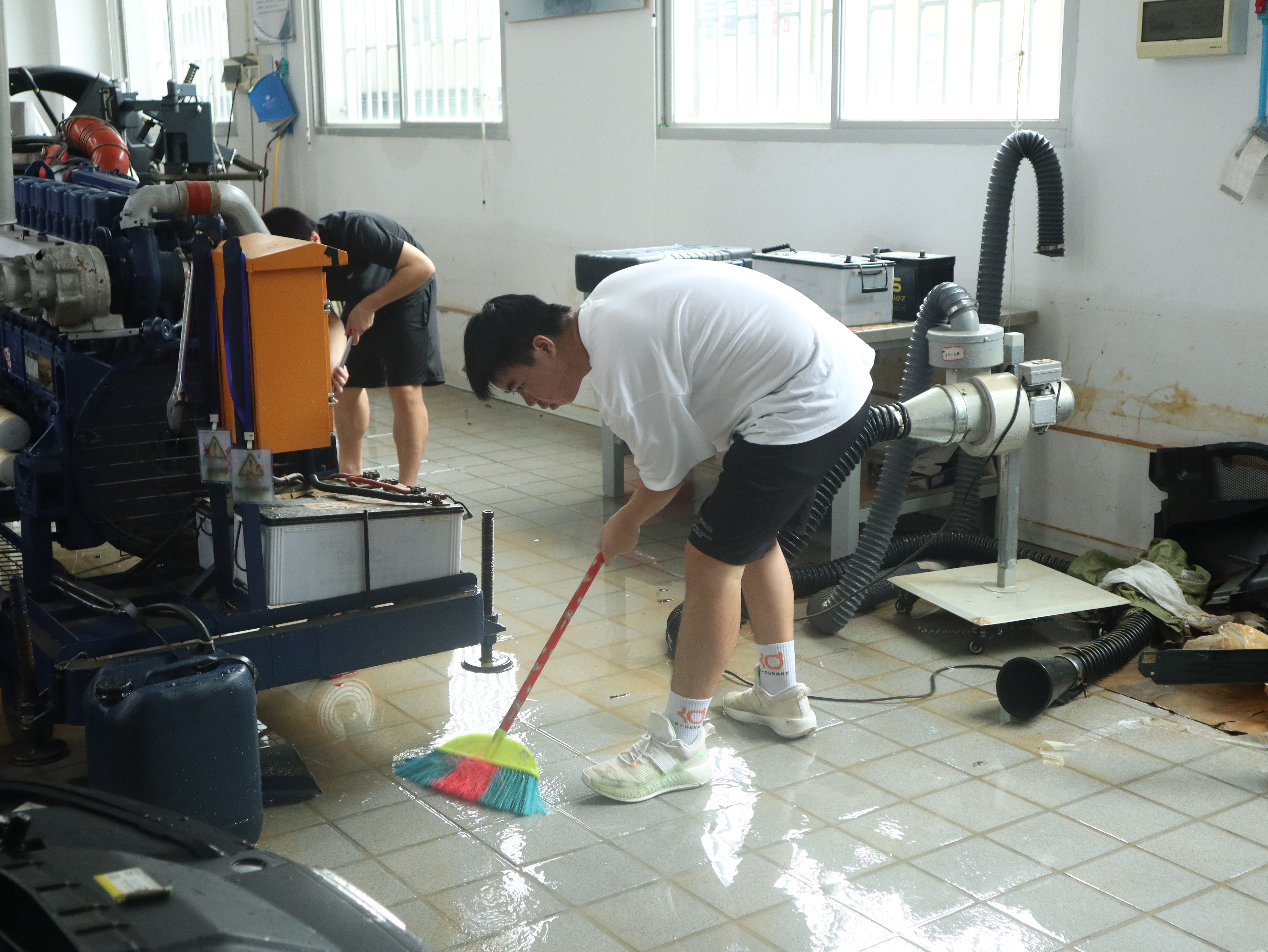 9月5日晚上開始的持續(xù)特大暴雨,學(xué)院上下齊心,確保了學(xué)生的安全穩(wěn)定。但風(fēng)雨過后,大量雨水裹挾泥沙滲入實(shí)訓(xùn)室。