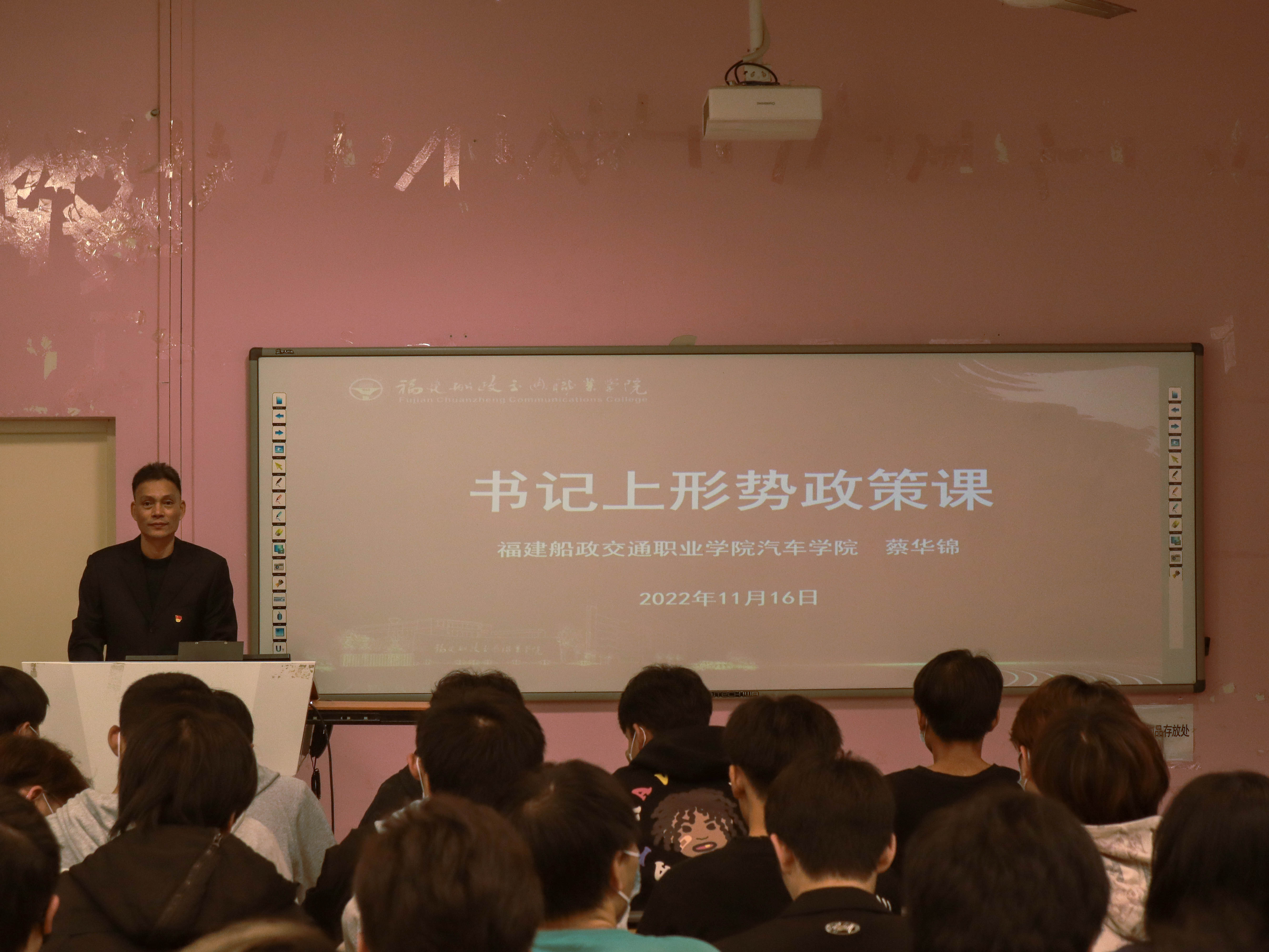 為深入學(xué)習(xí)宣傳貫徹黨的二十大精神,2022年11月16日,汽車學(xué)院黨總支書記蔡華錦以“傾聽時(shí)代脈動(dòng),展開奮斗之翼”為主題,講授學(xué)習(xí)黨的二十大精神專題“形勢(shì)與政策”課。汽車學(xué)院學(xué)生代表現(xiàn)場(chǎng)聆聽。