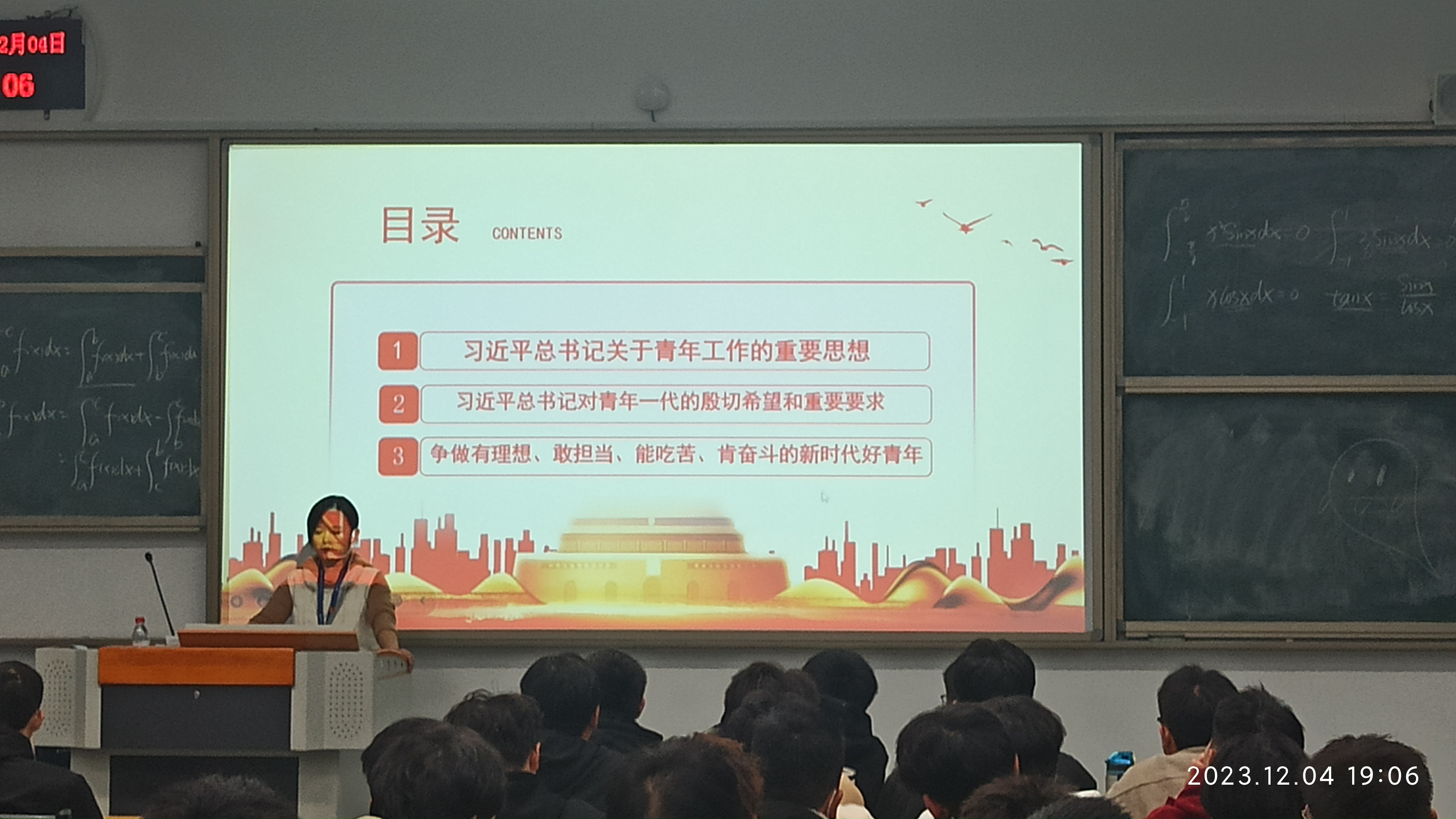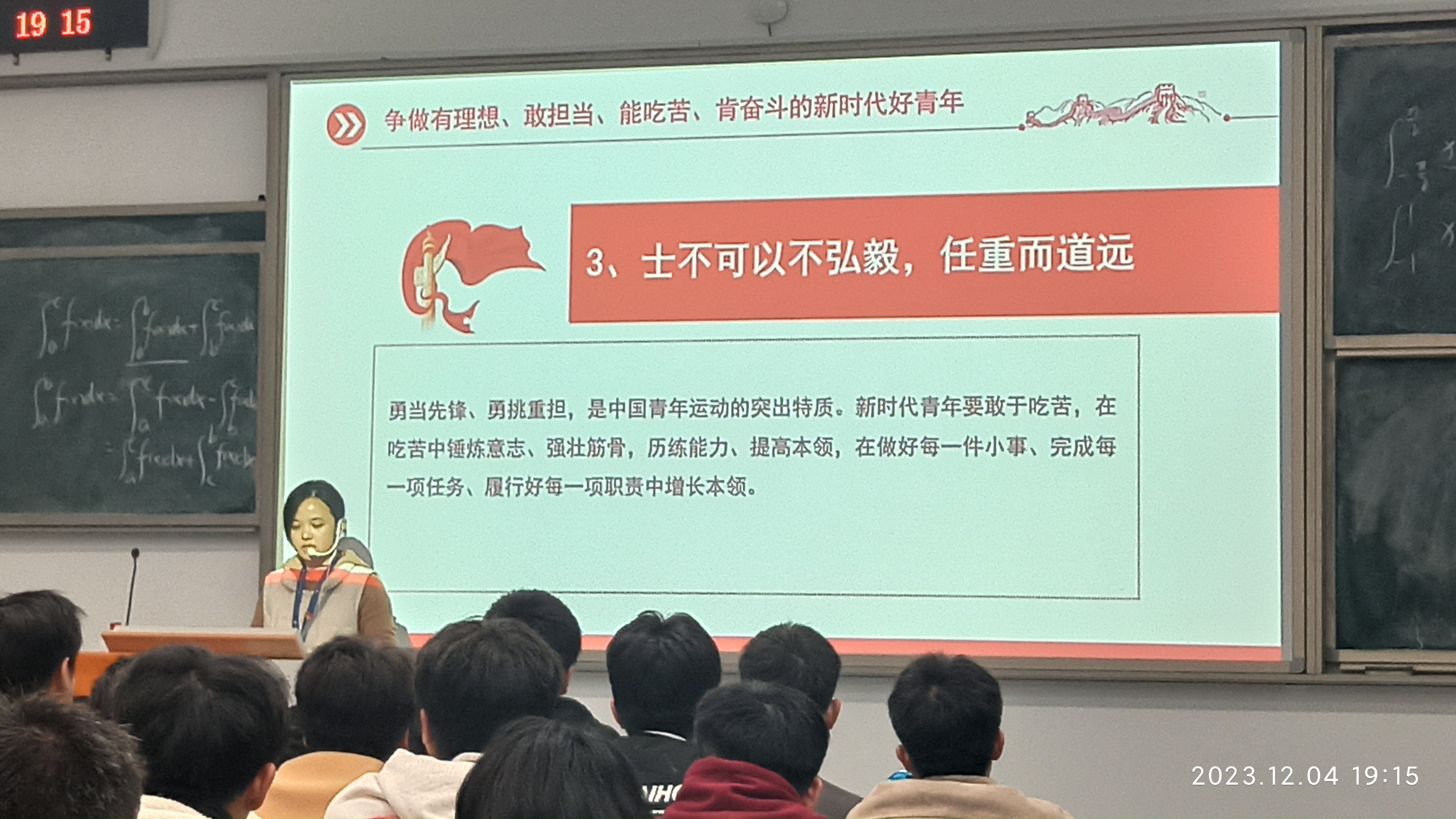 挺鷹擔(dān)當(dāng)?shù)Z青春,奮楫篤行向未來。為深入學(xué)習(xí)習(xí)近平總書記關(guān)于青年工作的重要思想,以及習(xí)近平總書記對青年一代的殷殷囑托和重要要求,2023年12月4日,汽車學(xué)院分團(tuán)委團(tuán)干部教師朱慧君老師,以“挺鷹擔(dān)當(dāng)?shù)Z青春,奮楫篤行向未來”為主題,面向汽車學(xué)院青年開展宣講活動,進(jìn)一步激發(fā)汽車青年強(qiáng)國有我的青春激情,爭做有理想、敢擔(dān)當(dāng)、能吃苦、肯奮斗的新時(shí)代好青年,在中國式現(xiàn)代化建設(shè)中挺膺擔(dān)當(dāng)。