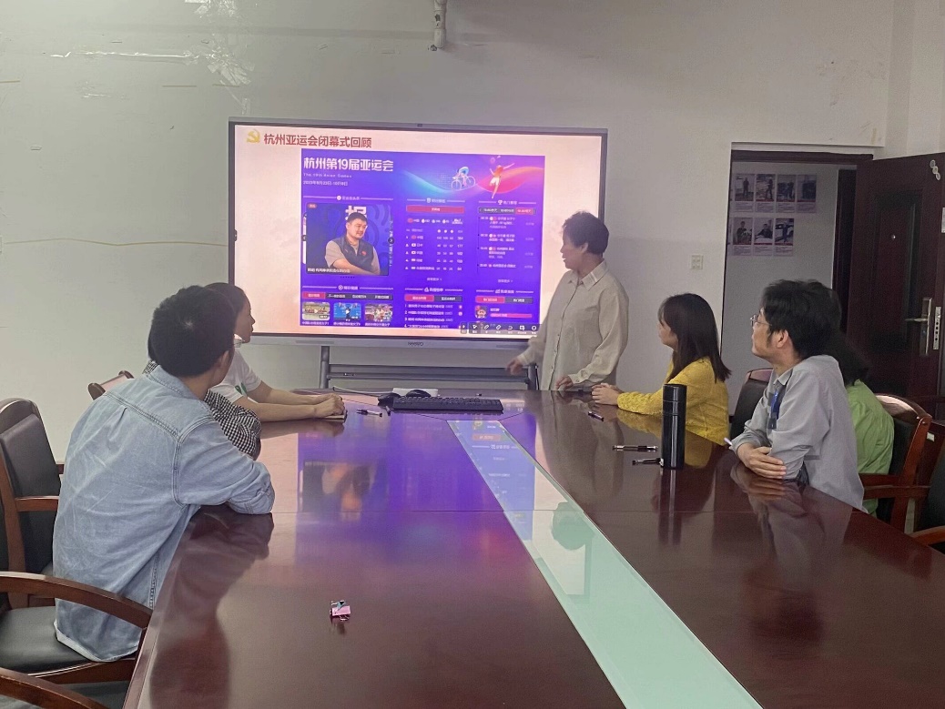 首先,朱劍寶帶領支部黨員回顧了杭州亞運會閉幕式,閉幕式氣氛歡快,支部黨員感受頗多。大家為亞運會的成功舉辦而歡呼,為中國展示出的大國風采而驕傲,為運動健兒奮力拼搏后臉上洋溢的笑容而感動。