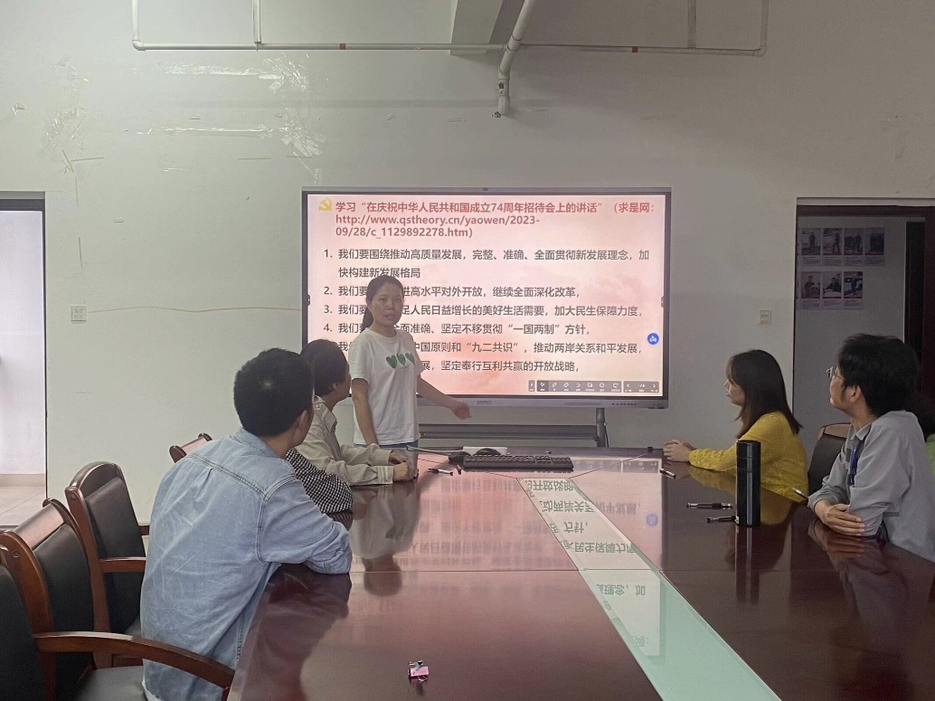 隨后朱劍寶同志組織大家學習習近平總書記“在慶祝中華人民共和國成立74周年招待會上的講話”及“習近平:扎實推動教育強國建設”。學習結束朱劍寶組織支部黨員結合自身實際交流討論期中教學的收獲與不足,大家紛紛表示今后將認真學習領會報告精神,抓實立德樹人各項工作,培養(yǎng)更多高素質人才。