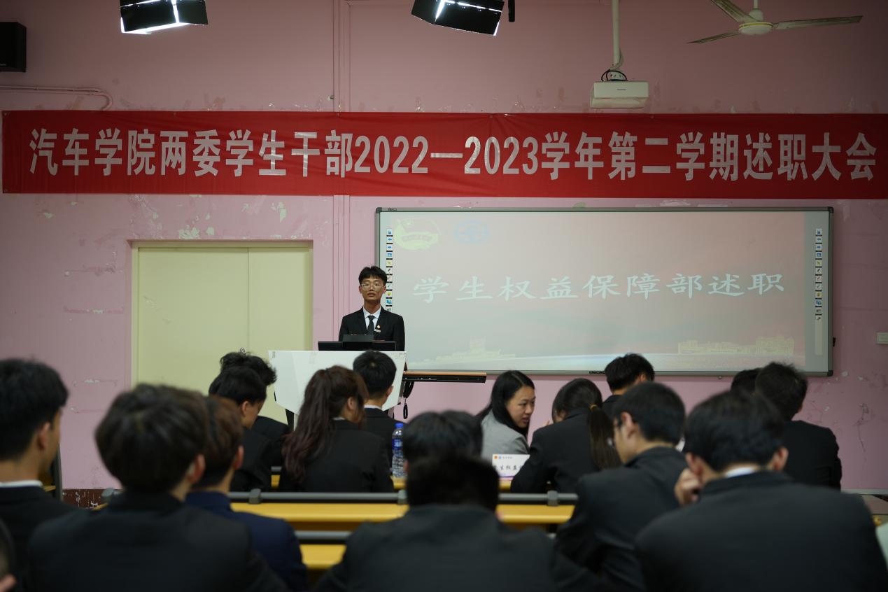 為學(xué)習(xí)貫徹習(xí)近平新時代中國特色社會主義思想,強(qiáng)化我院團(tuán)委、學(xué)生會組織建設(shè),推動我院團(tuán)學(xué)干部的履職能力和作風(fēng)建設(shè),培養(yǎng)信仰堅(jiān)定、能力突出、素質(zhì)優(yōu)良、作風(fēng)過硬的青年骨干,進(jìn)一步激發(fā)學(xué)院高質(zhì)量動能。汽車學(xué)院于2023年6月11日在北區(qū)2號樓1-3組織召開2022-2023學(xué)年第二學(xué)期兩委學(xué)生干部述職大會,共14個部門開展述職匯報(bào)。