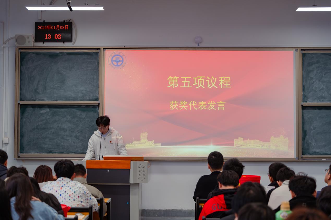 頒獎環(huán)節(jié)過后,24#205獲獎宿舍學生代表李武劍同學發(fā)表感言講話,他首先感謝學校精心搭建的活動平臺,回顧了他在文明宿舍建設月中和舍友們攜手共進的難忘時光,并向在場的同學分享其在改善宿舍環(huán)境、打造宿舍文化中好的經(jīng)驗和做法。