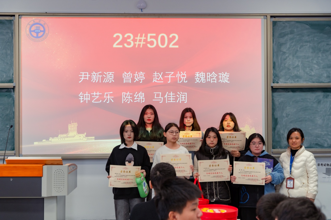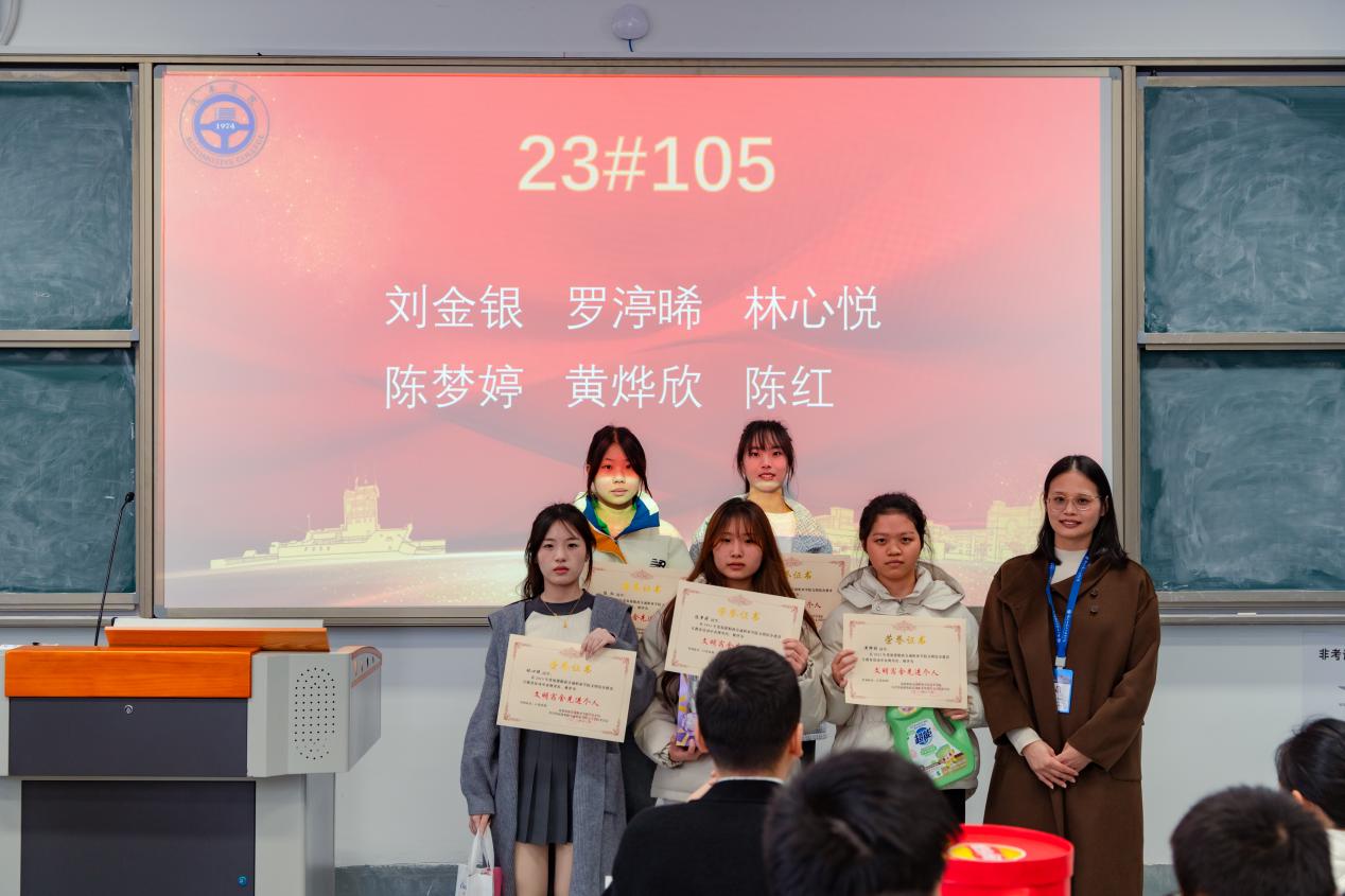 接著,由汽車學院輔導員黃唐芬、朱慧君、林思遠老師分別上臺,為帶班宿舍獲獎的同學頒發(fā)“文明宿舍先進個人”榮譽證書和精美獎品。
