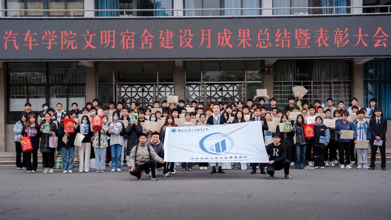 隨后,由汽車學院大學生自律委員會主席黃善彬宣讀表彰決定。他表示,過去一個月汽車學院自律會緊緊圍繞《福建船政交通職業(yè)學院學生宿舍管理規(guī)定》中關于創(chuàng)建文明宿舍總體要求,堅決落實學院領導及負責老師提出的具體要求,經(jīng)學校相關部門評審出校級文明宿舍17間,共計136位同學,并公布了具體名單。
