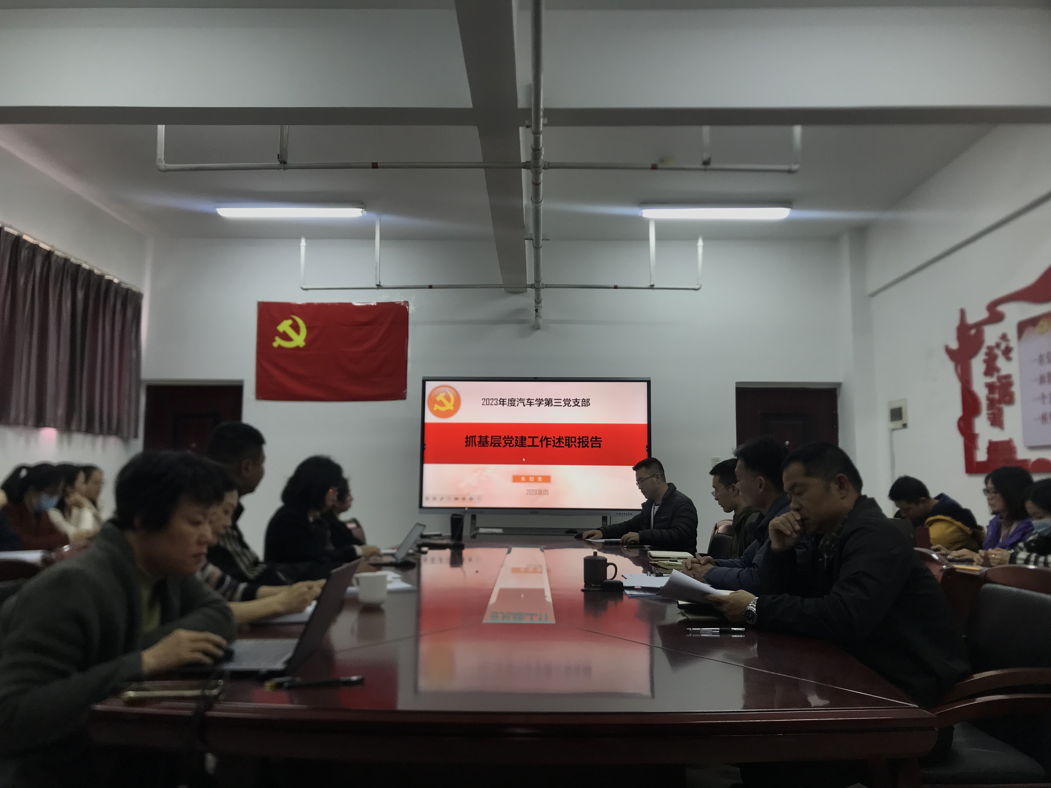 會(huì)議由汽車學(xué)院黨總支書記蔡華錦主持。汽車學(xué)院四個(gè)黨支部的書記依次進(jìn)行現(xiàn)場(chǎng)述職。他們聚焦學(xué)習(xí)貫徹習(xí)近平新時(shí)代中國特色社會(huì)主義思想和黨的二十大精神,圍繞主題教育、落實(shí)基層黨建工作責(zé)任、推動(dòng)黨建“一融雙高”破解發(fā)展難題情況、主要做法和特色成果進(jìn)行匯報(bào),同時(shí)剖析了工作中存在的問題和不足,提出了整改措施和2024年工作思路。