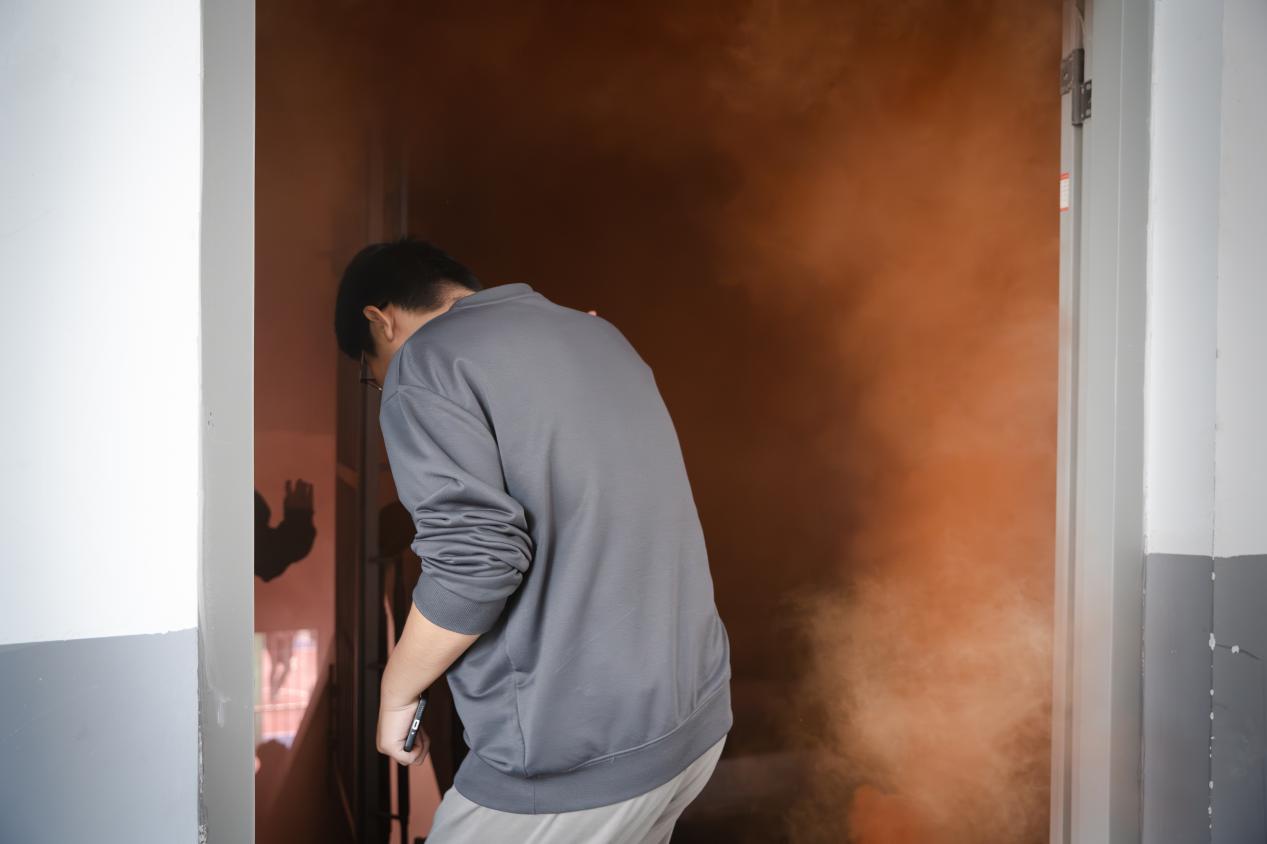 正午時分,隨著警報聲的響起,消防應急疏散演練拉開了帷幕,宿舍樓的同學們在輔導員的指引下,按照事先規(guī)定的逃生路線,高效、有序地進行了撤離,俯下身、捂口鼻,快速跑向安全區(qū)域集中,在應急疏散過程中,紀保部成員、各班班長以及宿舍長緊密配合,確保了同學們的安全撤離。隨后,自律會副主席謝智弘對滅火器的使用方法進行了示范,各班同學積極參與其中,按照“一提、二拔、三握、四壓”的動作要領,成功將火盆中的明火撲滅。