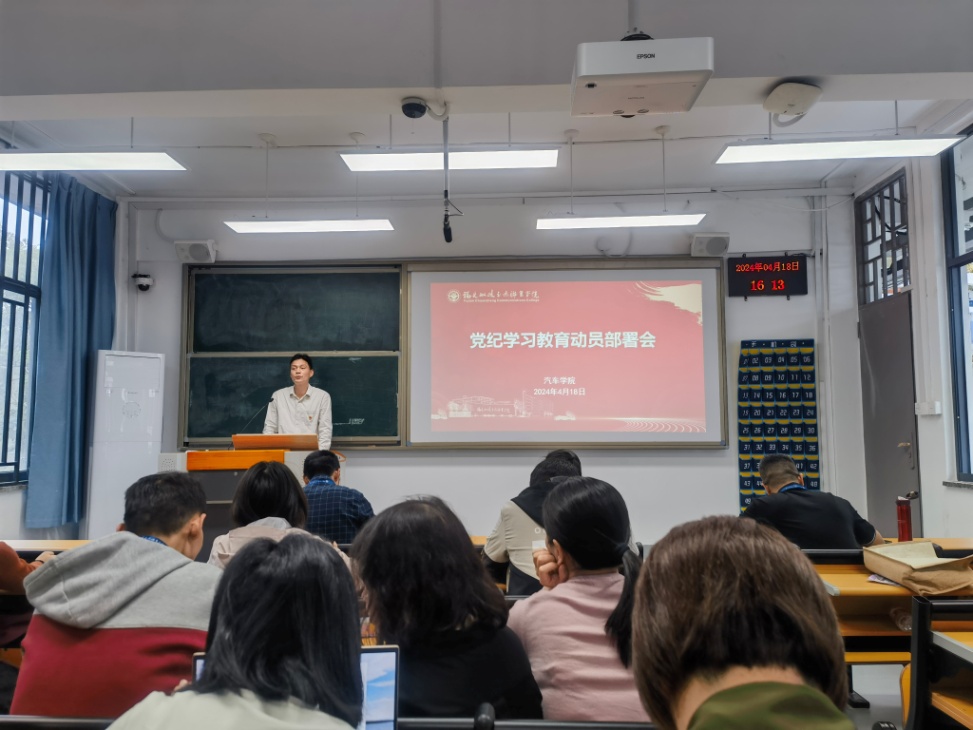4月18日下午,汽車學(xué)院在北區(qū)求是樓召開全體黨員大會,傳達(dá)學(xué)習(xí)習(xí)近平總書記關(guān)于黨紀(jì)學(xué)習(xí)教育的重要講話重要指示精神、校黨委關(guān)于開展黨紀(jì)學(xué)習(xí)教育會議精神,部署我院黨紀(jì)學(xué)習(xí)教育工作。會議由黨總支書記蔡華錦主持,學(xué)院領(lǐng)導(dǎo)班子、全體黨員參會。