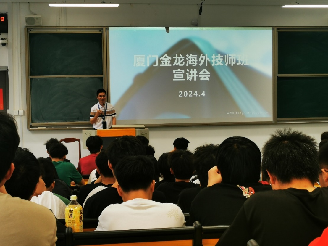 為更好服務(wù)“一帶一路”,深化產(chǎn)教融合,加強(qiáng)校企交流合作,強(qiáng)化人才建設(shè),2024417日,汽車學(xué)院聯(lián)合廈門金龍聯(lián)合汽車工業(yè)有限公司(以下簡稱“金龍”)開展海外技師訂單班宣講和選拔,這是雙方共建沙特“海絲學(xué)院”后的進(jìn)一步合作。汽車學(xué)院蘇慶列院長、廈門金龍人事部及海外售后服務(wù)部經(jīng)理、相關(guān)專業(yè)教師及2023級汽車智能技術(shù)專業(yè)全體學(xué)生參加了活動。