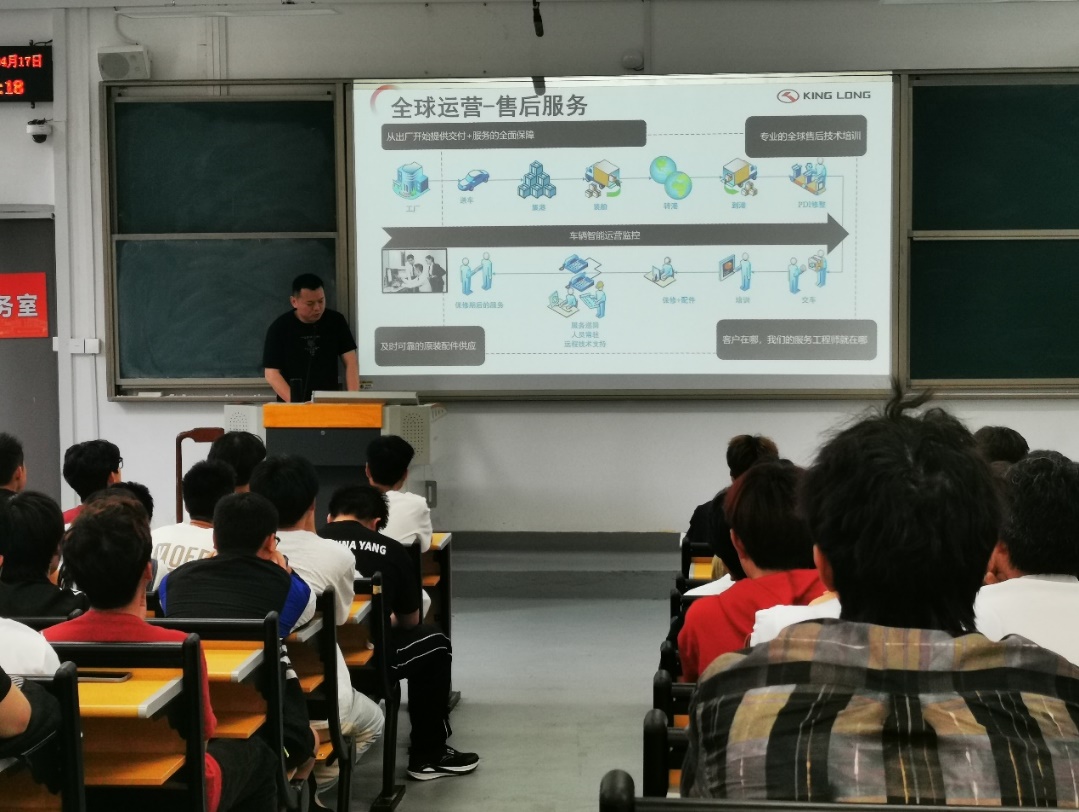 金龍人事部陳力昕經(jīng)理介紹了金龍的企業(yè)發(fā)展情況;海外售后服務(wù)部林奇山經(jīng)理重點介紹了金龍海外售后概況、海外服務(wù)工程師的崗位職責(zé)和能力要求、職業(yè)晉升通道。