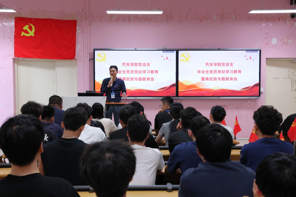 為進一步加強畢業(yè)生黨員黨紀教育,引導畢業(yè)生黨員進一步堅定理想信念,2024年4月24日上午,汽車學院黨總支在自強樓1-3教室召開2024屆畢業(yè)生黨員黨紀學習教育暨離校專題教育會,汽車學院黨總支蔡華錦書記、組織員何杰老師、第一學生黨支部黃唐芬書記、團委書記、第二學生黨支部書記余晨煒老師,畢業(yè)班輔導員施文、黃見山老師及汽車學院全體畢業(yè)生黨員38人參加了會議。