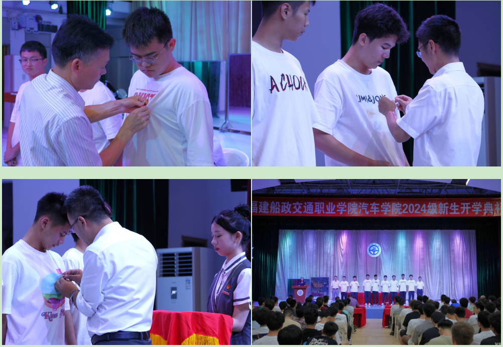 佩戴校徽儀式上,汽車(chē)學(xué)院黨政領(lǐng)導(dǎo)班子成員為新生代表佩戴?;?。自此,“求是自強(qiáng),求實(shí)創(chuàng)新”的校訓(xùn)將鐫刻進(jìn)新汽車(chē)學(xué)子的心底。