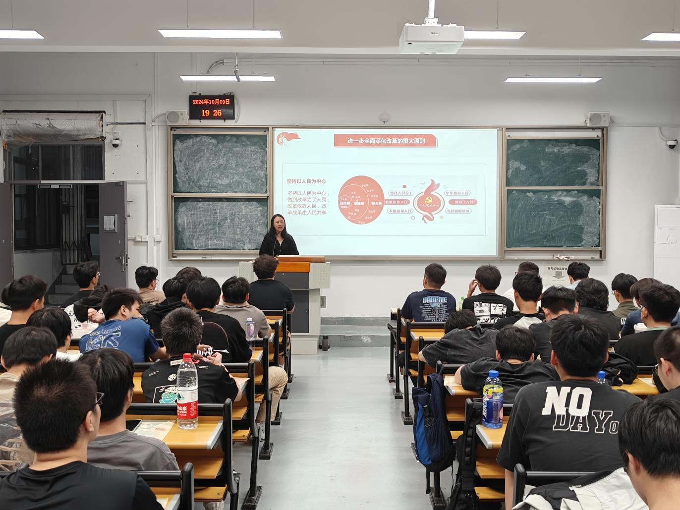 黨的二十屆三中全會(huì)對(duì)新時(shí)代新征程上進(jìn)一步全面深化改革、推進(jìn)中國(guó)式現(xiàn)代化作出總部署、總動(dòng)員,也對(duì)青年一代和共青團(tuán)工作提出了新任務(wù)新要求。為深入學(xué)習(xí)貫徹黨的二十屆三中全會(huì)精神,深刻把握其精神實(shí)質(zhì)和重大意義,激勵(lì)廣大青年學(xué)生為強(qiáng)國(guó)建設(shè)、民族復(fù)興偉業(yè)挺膺擔(dān)當(dāng),近日,汽車學(xué)院舉行“黨的二十屆三中全會(huì)精神主題宣講”活動(dòng)。本次宣講活動(dòng)由汽車學(xué)院團(tuán)干教師主講,覆蓋24級(jí)全體新生。