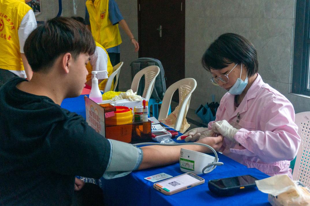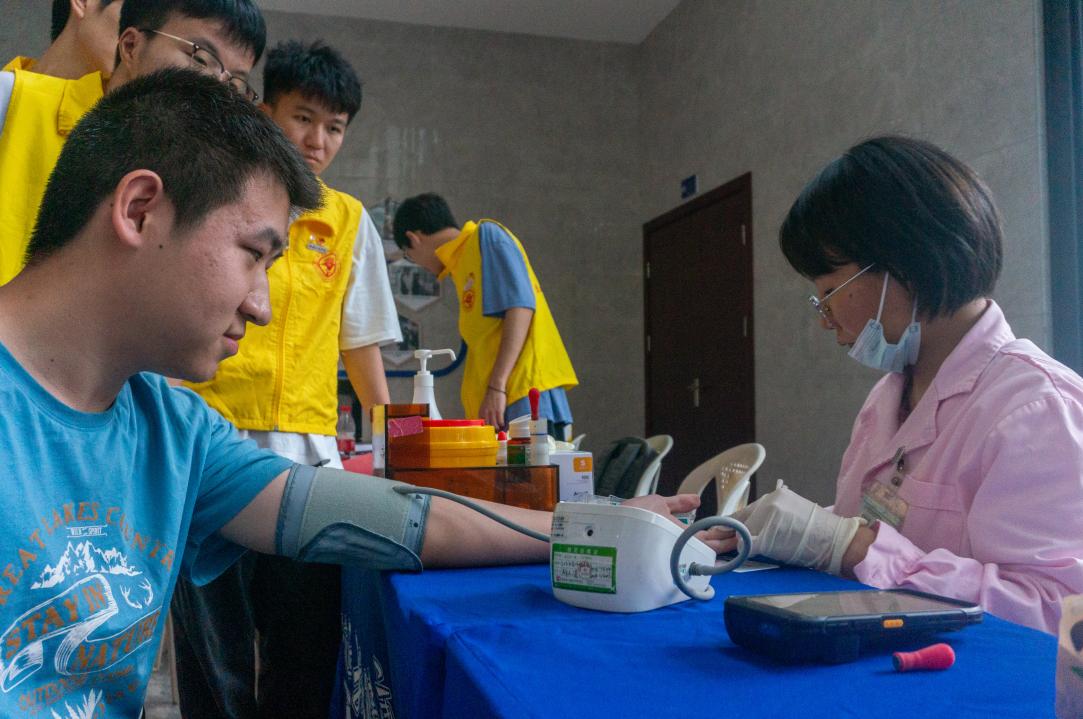 登記好了身份信息之后,為確保同學(xué)們做好了獻(xiàn)血準(zhǔn)備,醫(yī)務(wù)人員將測量獻(xiàn)血者血壓,詢問是否有貧血、高血壓等不適宜獻(xiàn)血的體征,接著采集血樣,進(jìn)行血型檢測查看是否符合獻(xiàn)血標(biāo)準(zhǔn)。