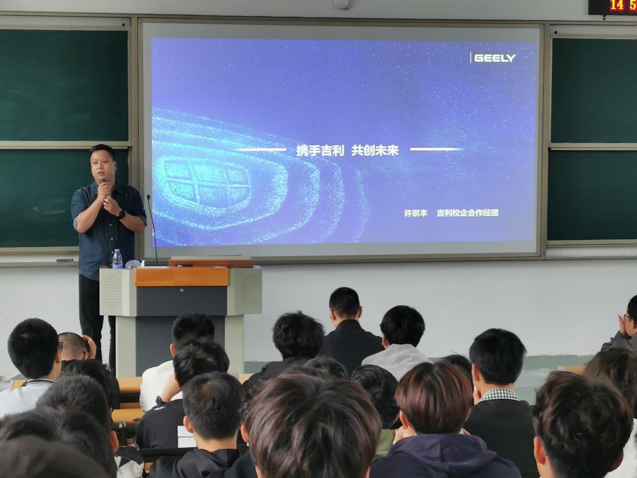 吉利汽車校企合作代表在宣講會上詳細(xì)介紹了吉利的企業(yè)發(fā)展歷史、規(guī)模及發(fā)展前景,全面闡述了吉利汽車的培養(yǎng)體系,以及訂單班學(xué)員的優(yōu)厚薪資待遇和清晰的崗位晉升路徑。代表就同學(xué)們關(guān)心的問題進(jìn)行針對性地解答,也為同學(xué)們提供了職業(yè)生涯規(guī)劃的寶貴指導(dǎo)。