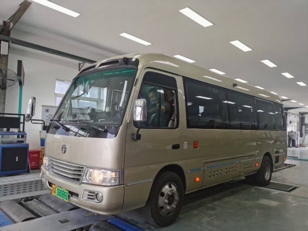 檢測(cè)團(tuán)隊(duì)依托新能源公交車(chē)檢測(cè)線,綜合運(yùn)用新能源汽車(chē)整車(chē)安全檢驗(yàn)裝備、電安全檢驗(yàn)裝備、加載制動(dòng)檢測(cè)臺(tái)、輪重檢測(cè)臺(tái)、底盤(pán)間隙儀、前照燈檢測(cè)儀及外廓尺寸測(cè)量?jī)x等先進(jìn)設(shè)備,對(duì)車(chē)輛展開(kāi)全方位技術(shù)診斷。