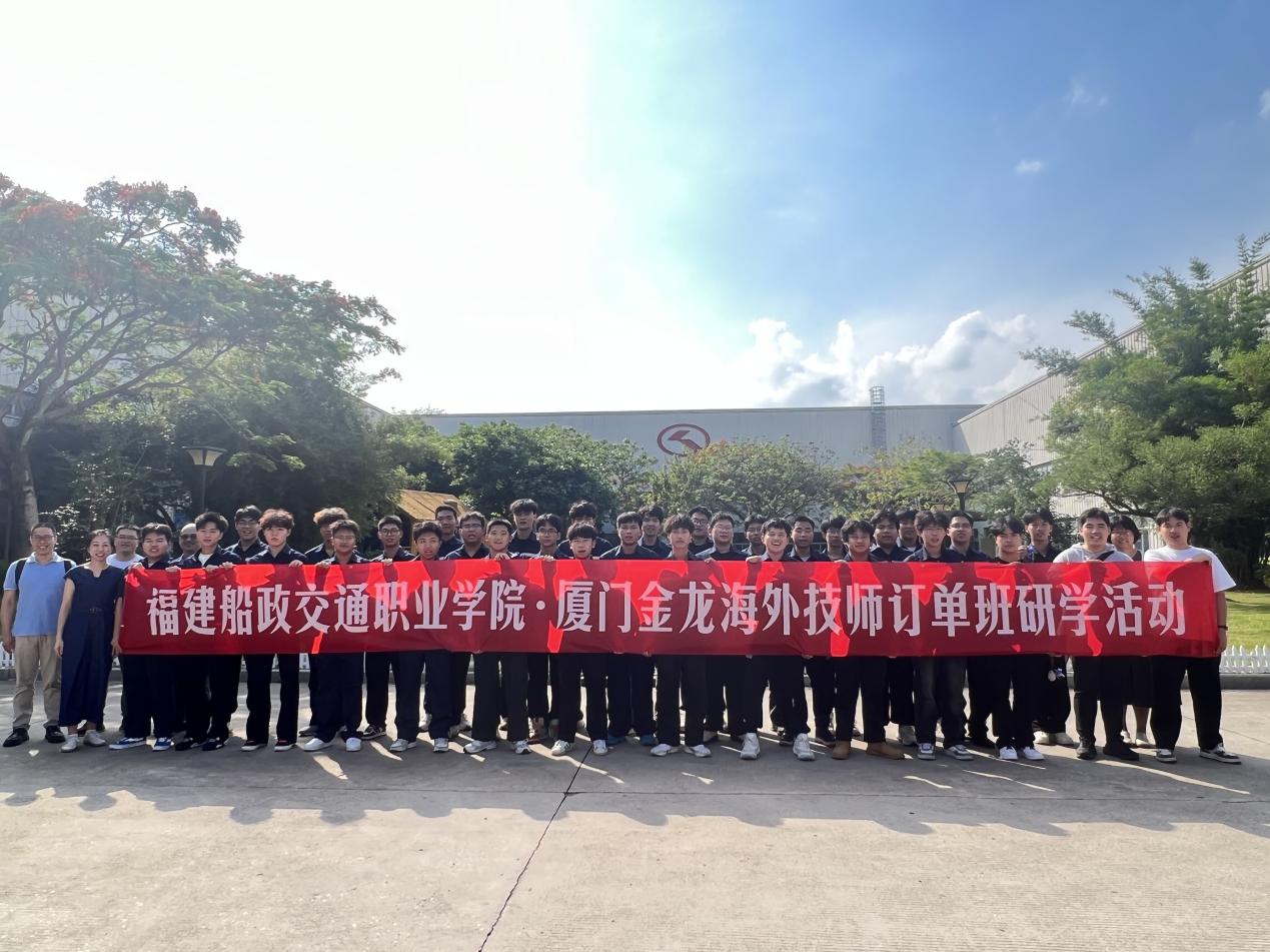 2025年5月21日,福建船政交通職業(yè)學院“廈門金龍海外技師訂單班”30名學子走進廈門金龍聯(lián)合汽車工業(yè)有限公司(以下簡稱“廈門金龍”),開展研學活動。此次活動是雙方共建“沙特海絲學院”后深化產(chǎn)教融合的重要實踐,聚焦智能駕駛技術、高端制造工藝與國際化職業(yè)素養(yǎng)培養(yǎng),為訂單班學生搭建起從課堂到產(chǎn)業(yè)、從本土到全球的成長橋梁。